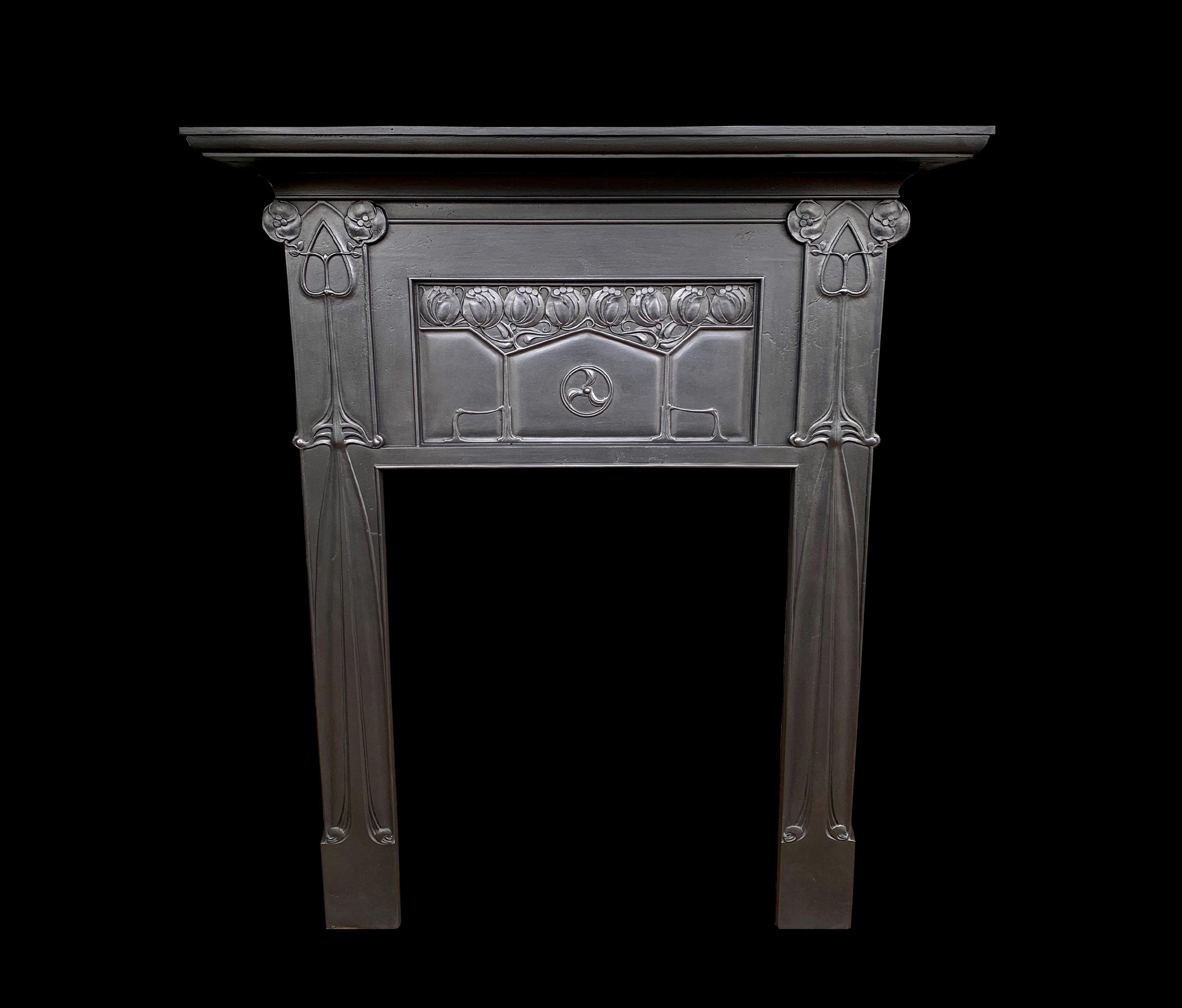 Original Antique Art Nouveau/Arts and Crafts Cast Iron Fire Surround - Ref CS97