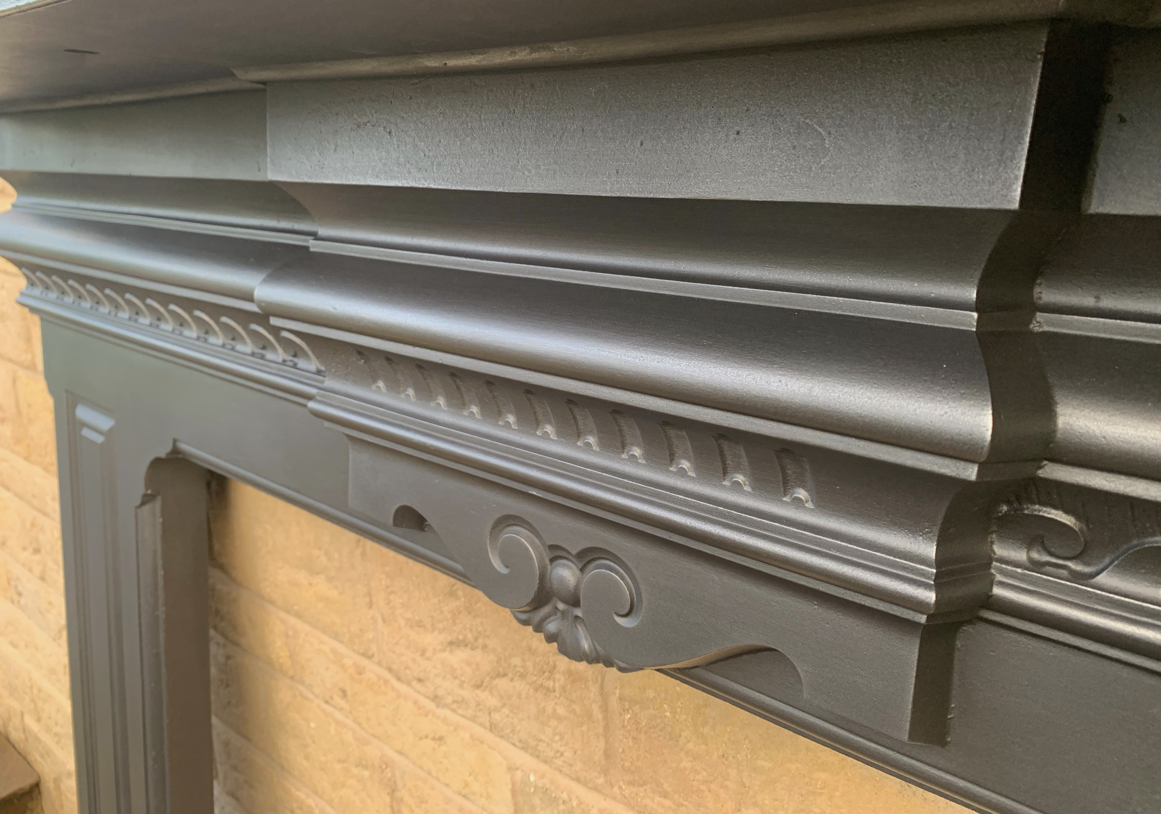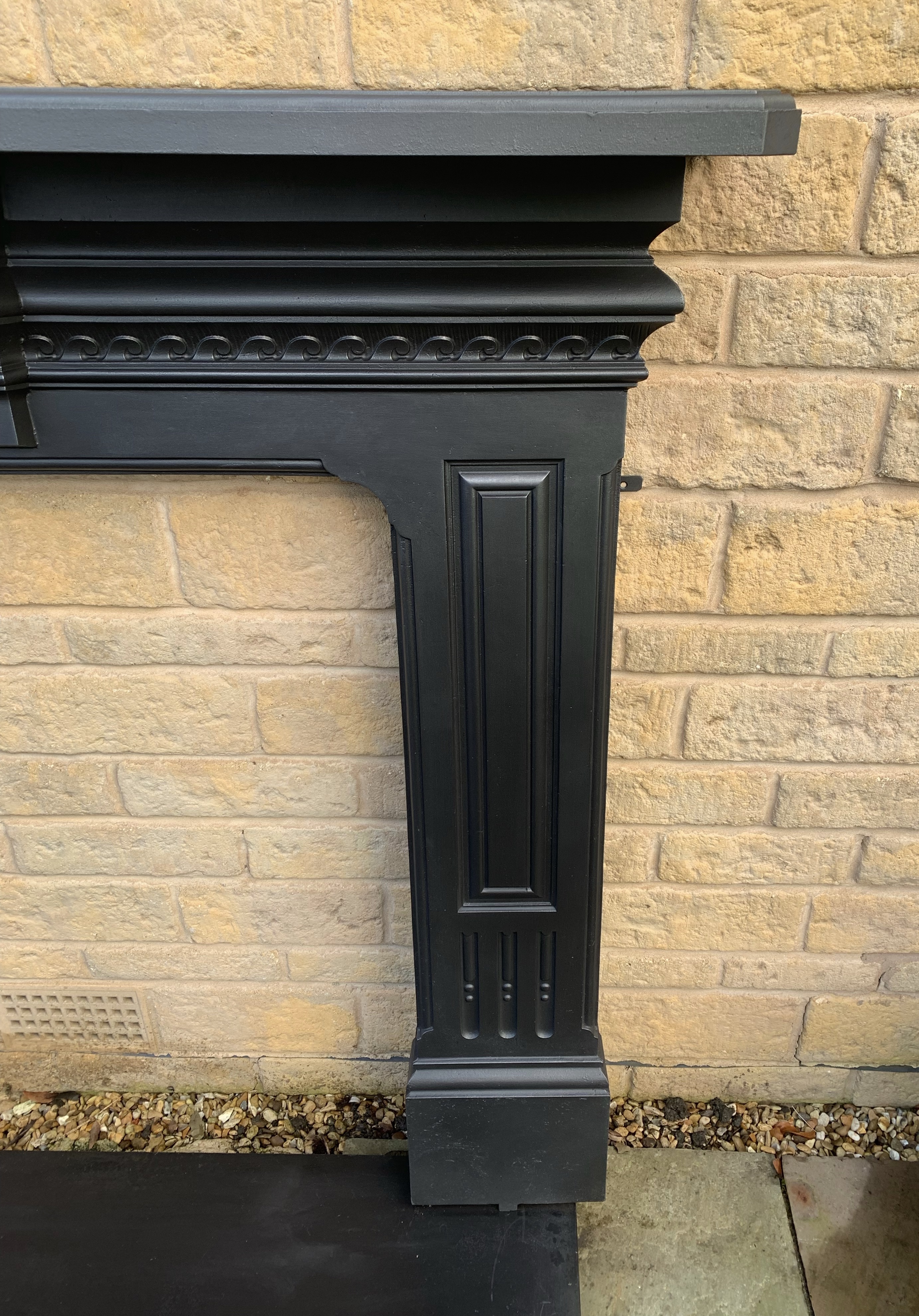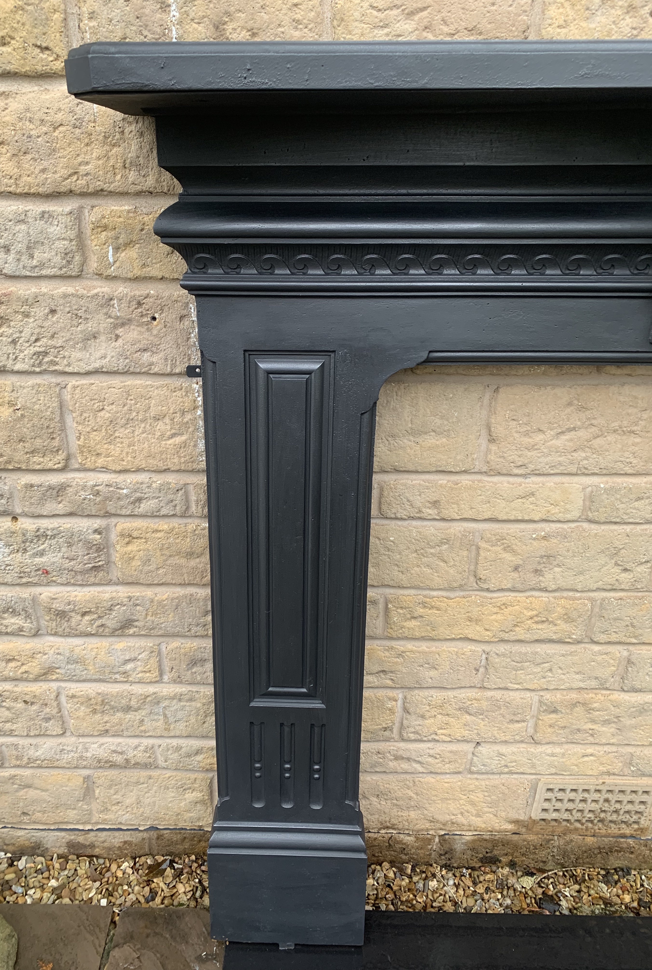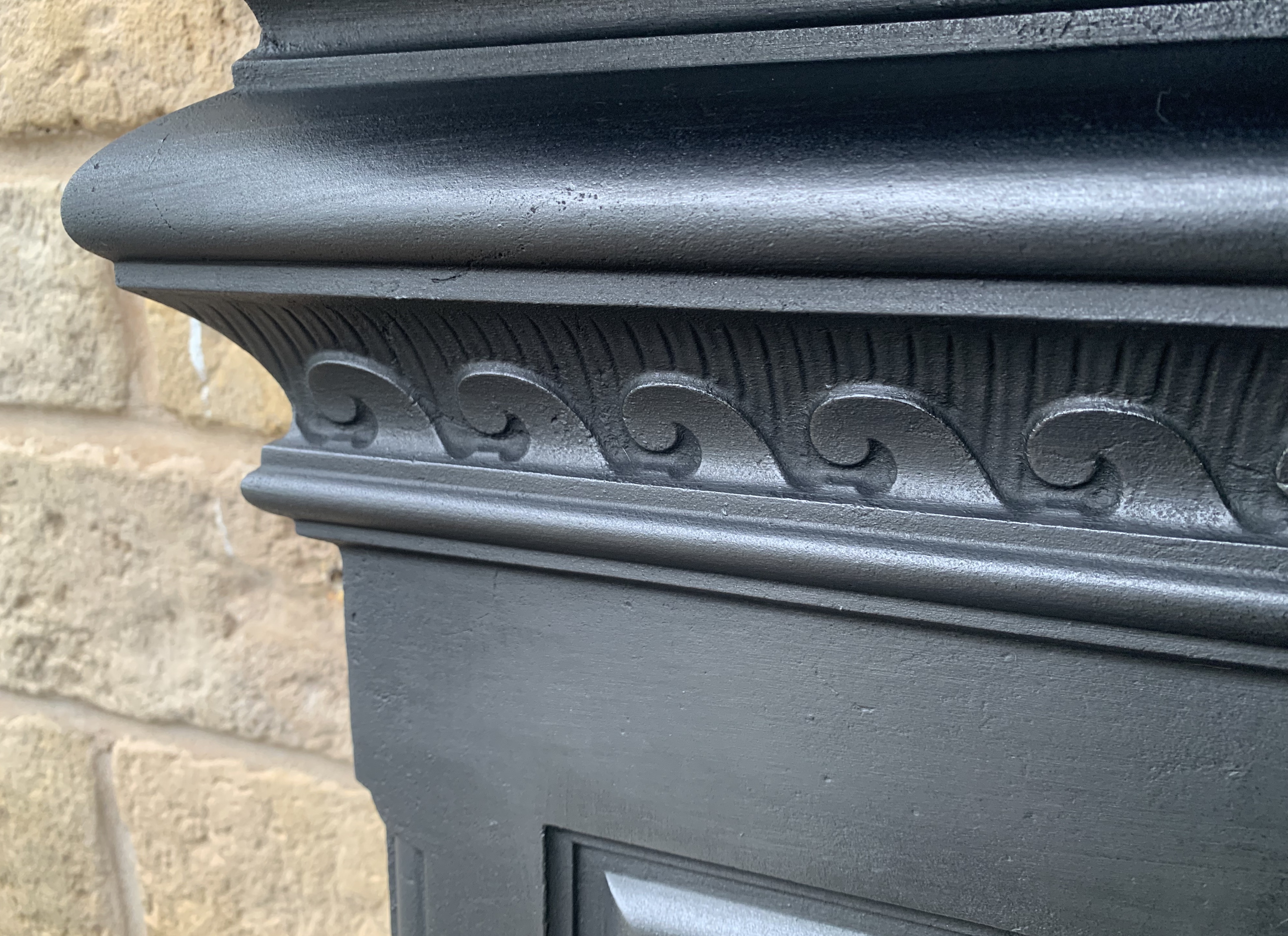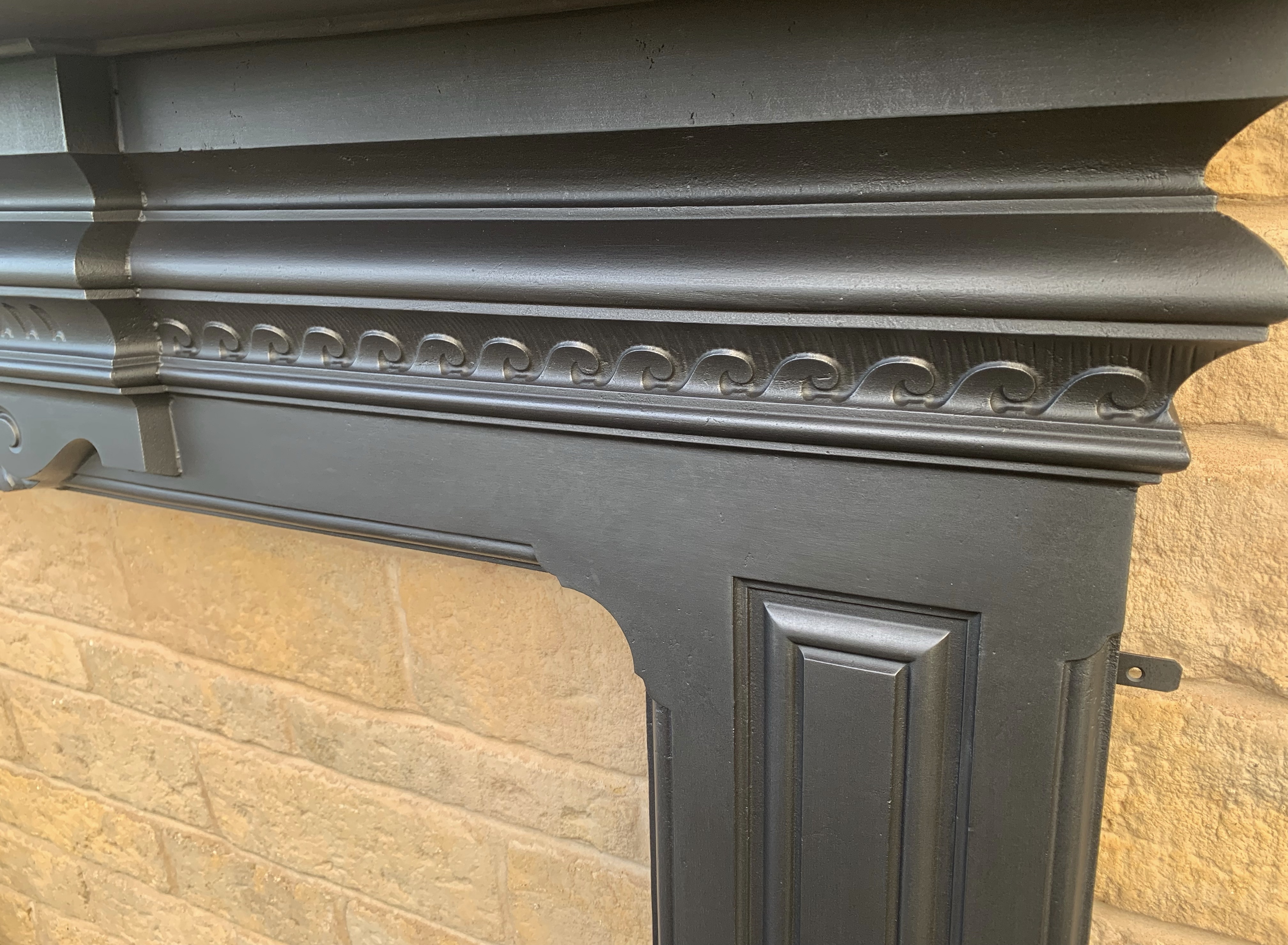 A stunning original antique Victorian cast iron fire surround with ornate wave style casting along the frieze and panelled legs. Contact us on 07885 379772 or message below for more information or to purchase.