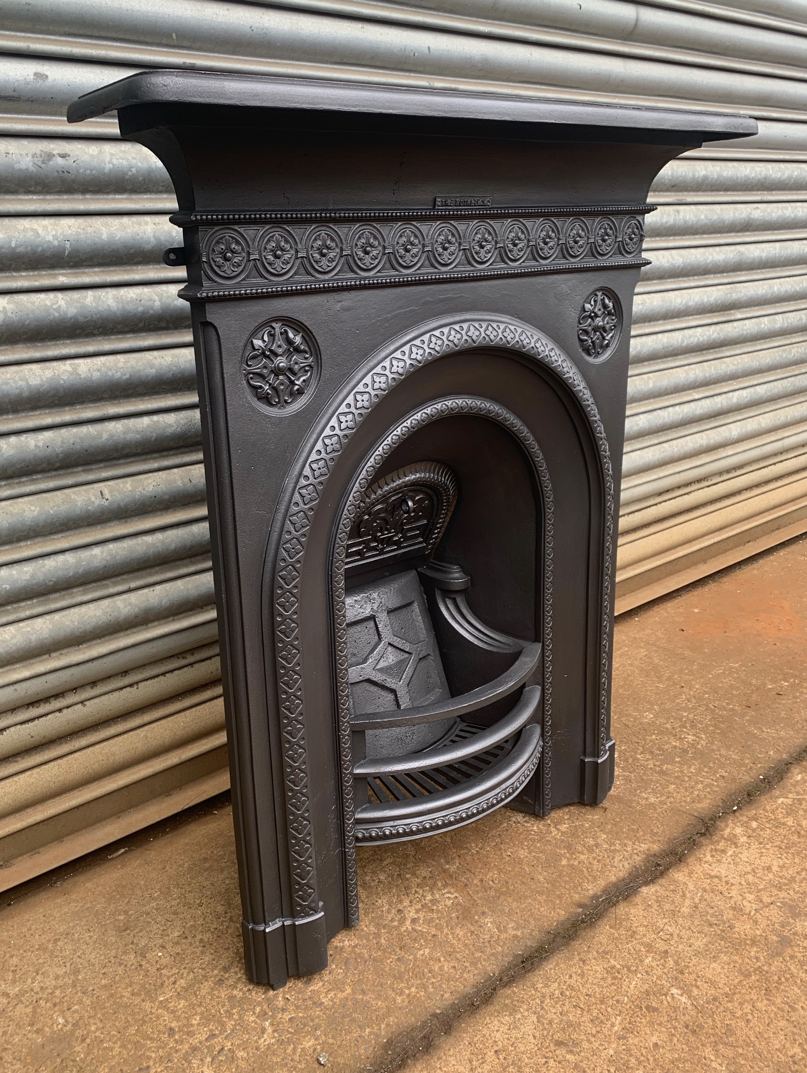 SOLD An original antique Victorian cast iron combination fireplace by the Rotherham Foundry. This fireplace is complete with its original decorative firebrick, closure plate and bars ready to install. Contact us on 07885 379772 or message below for more information or to purchase.