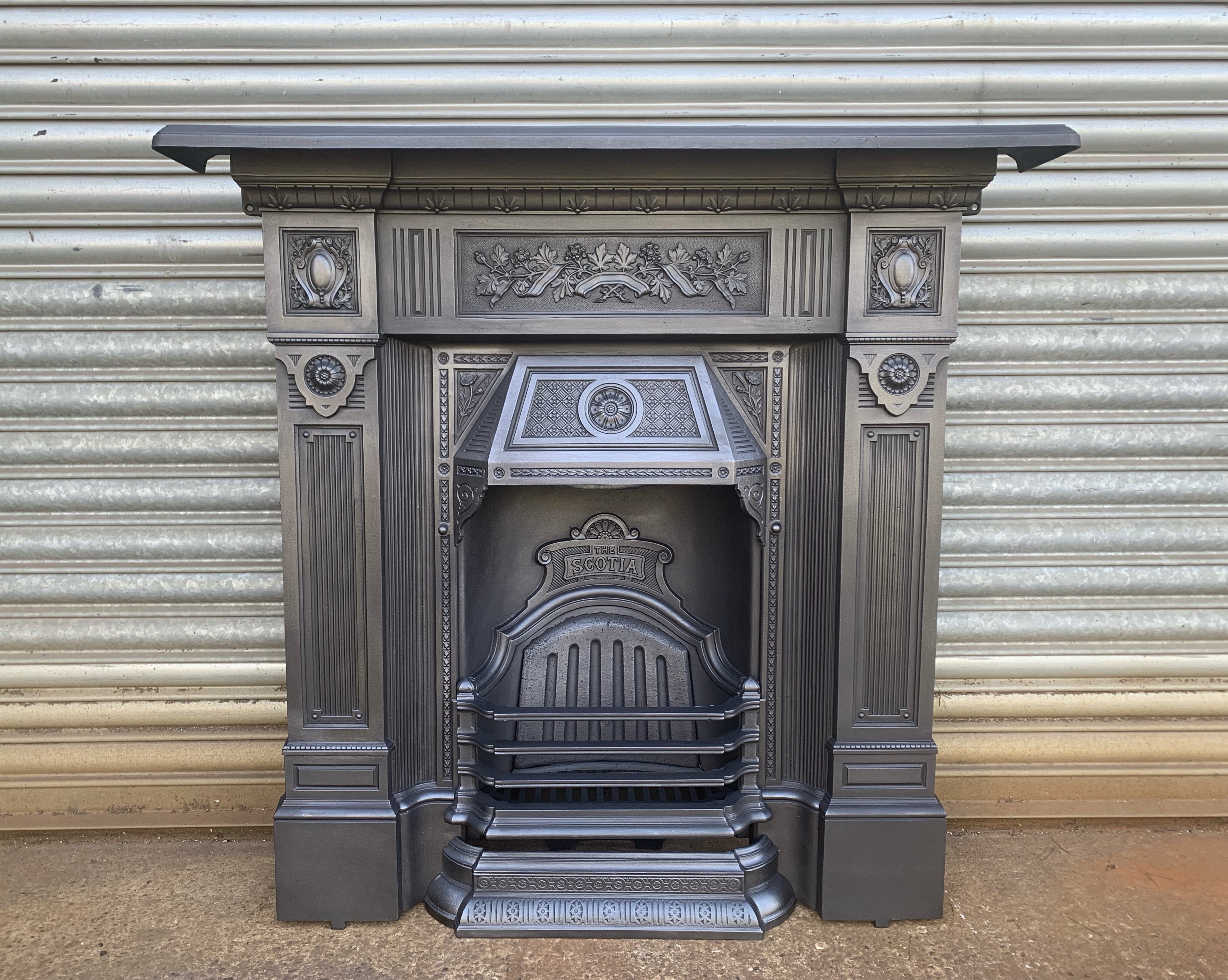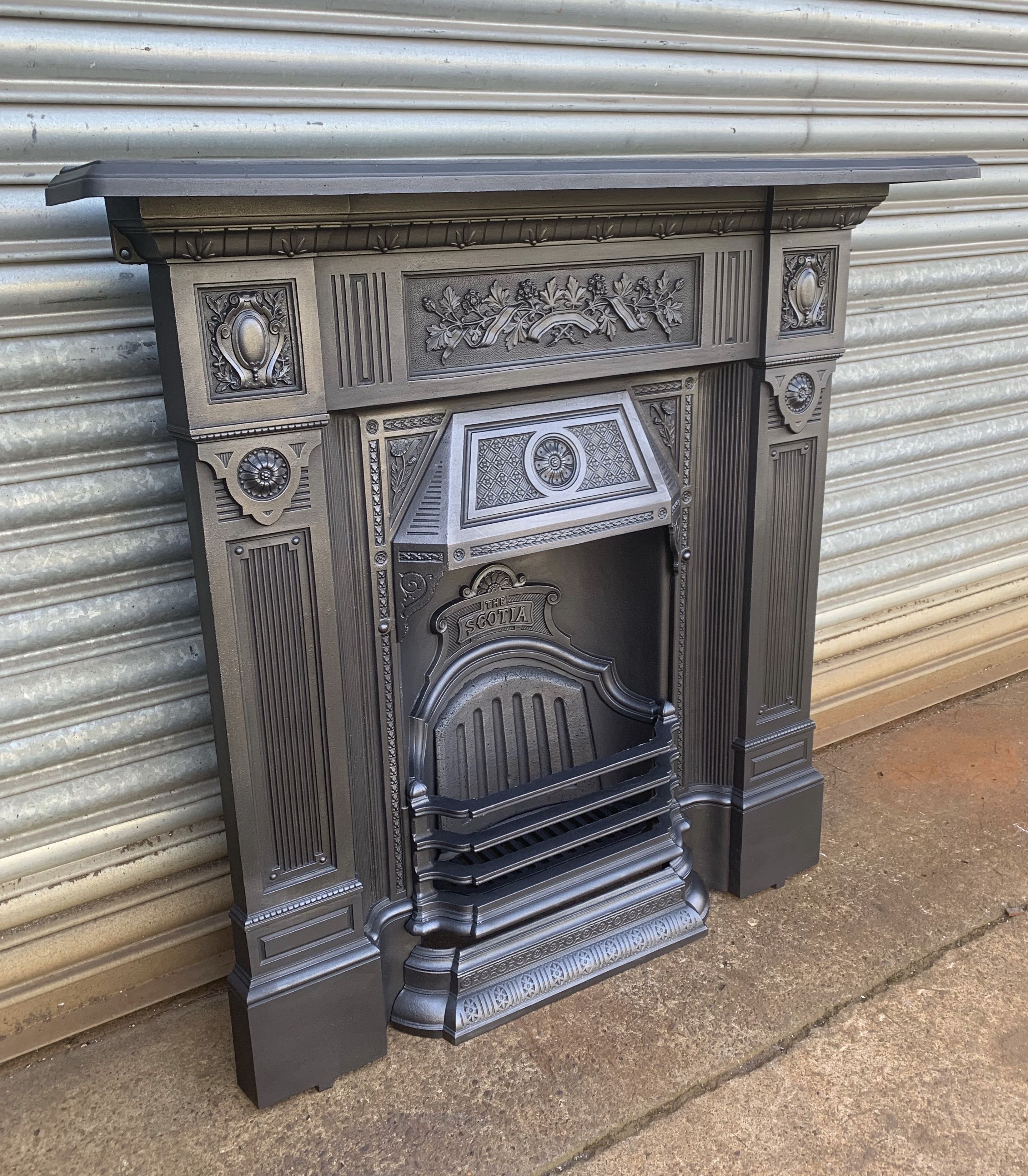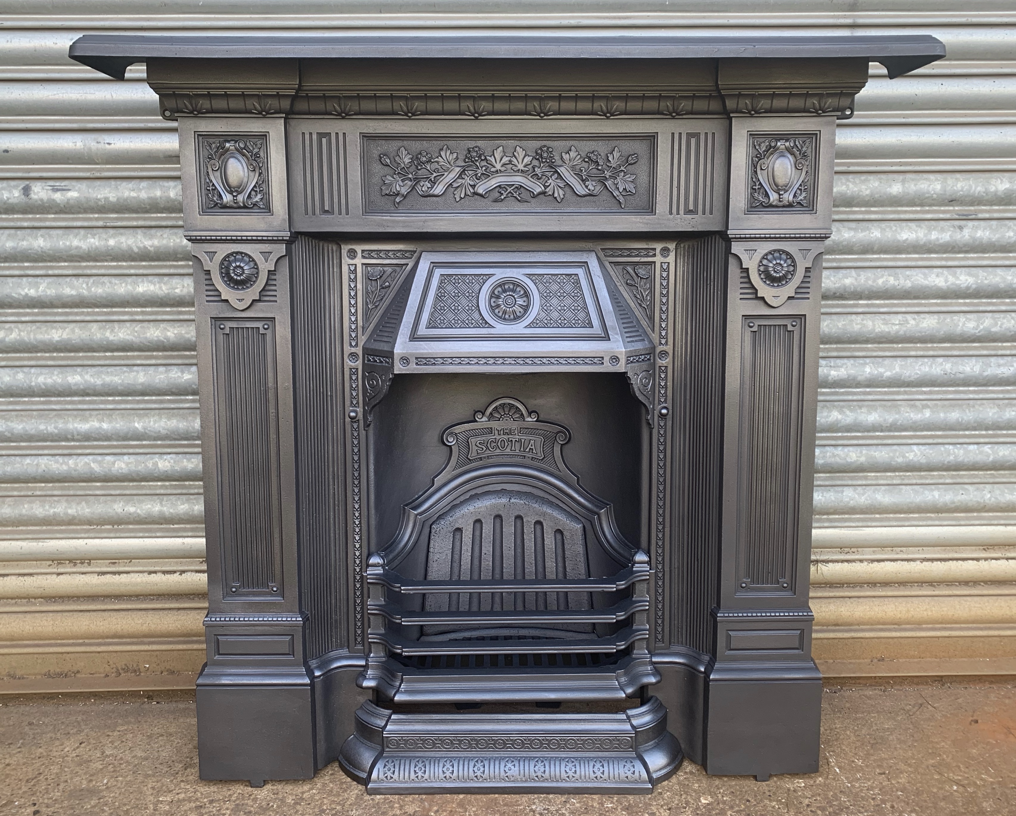 Original Antique Victorian Scotia Cast Iron Combination Fireplace - Ref CF291