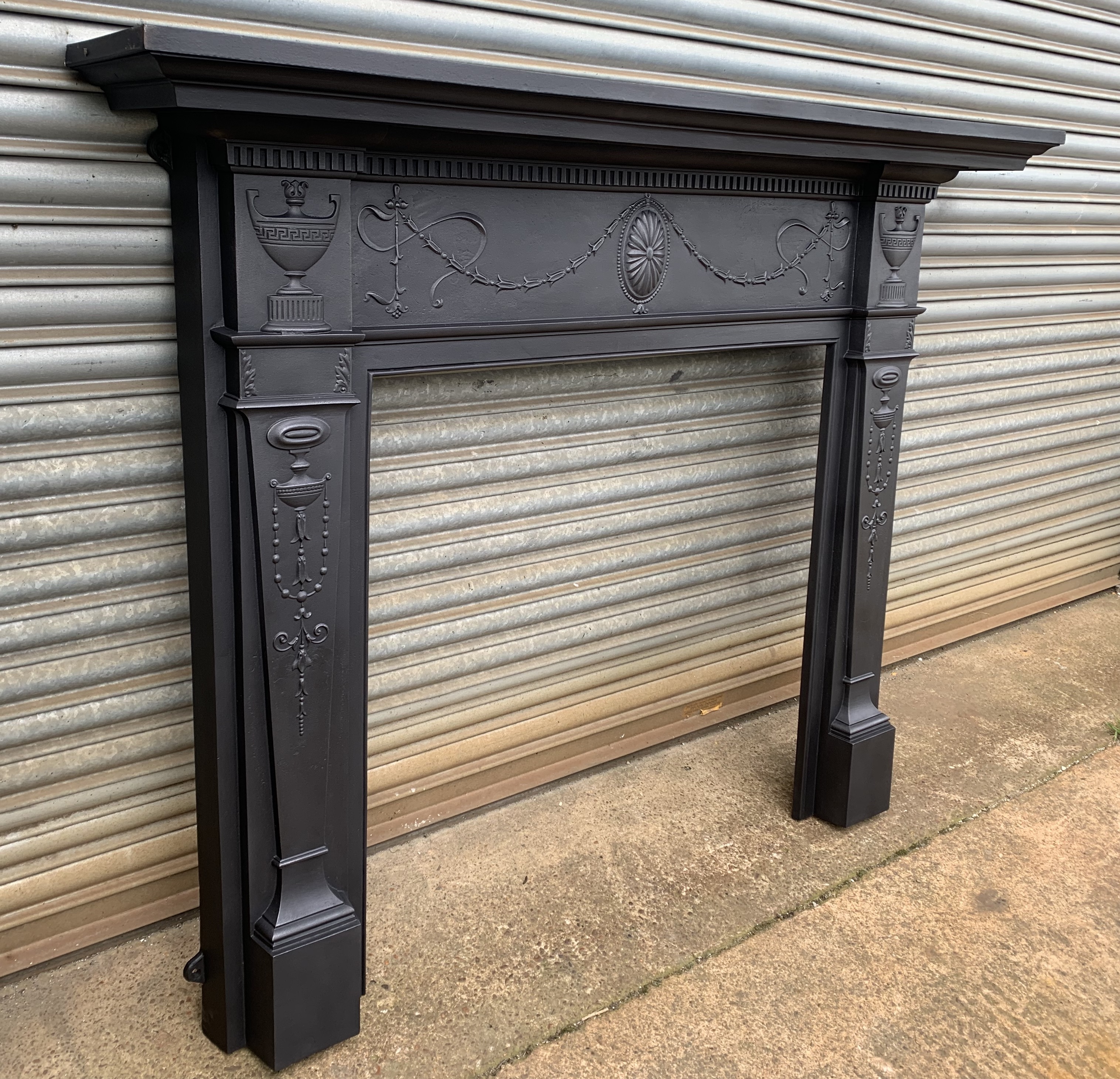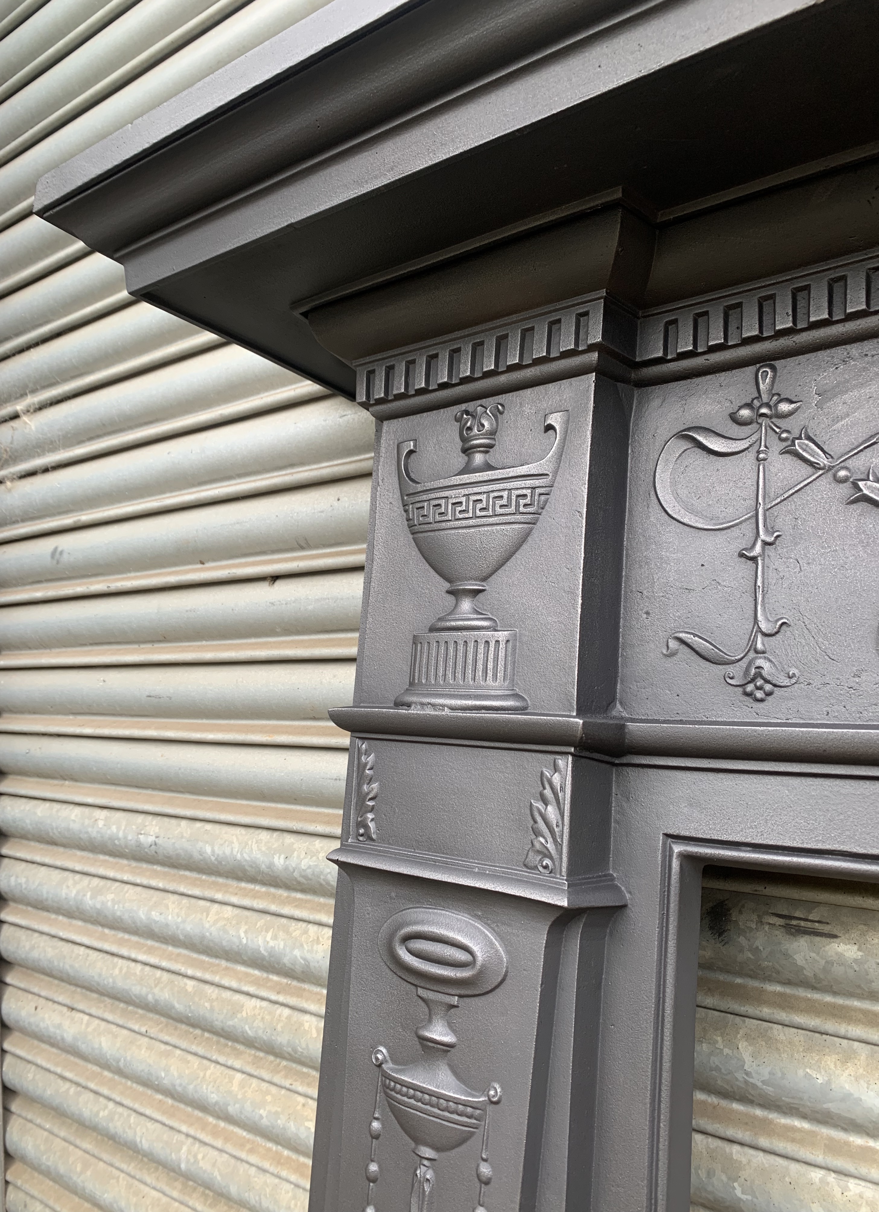 A beautiful original antique Victorian cast iron fire surround with a central rosette, flowing bell flowers flanked by Grecian urns. This would look stunning around a modern log burner or choose something from the many original Victorian tiled or arched inserts or even an original dog grate. Contact us on 07885 379772 or message below to discuss further or to purchase. Delivery is available.