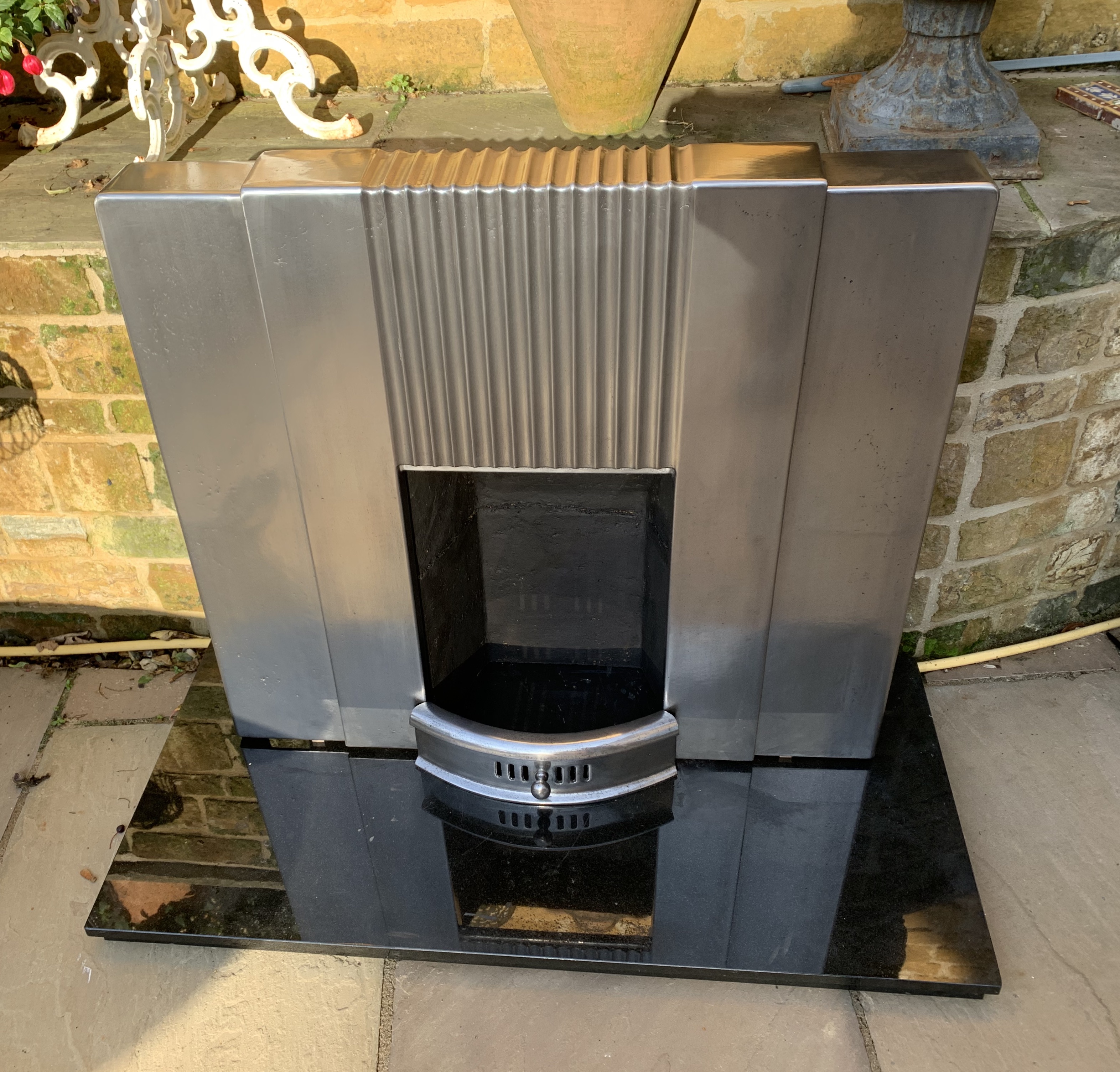 SOLD A stunning and rare original polished Art Deco 1930s cast iron combination fireplace. The fireplace will be completed with a new fire back and coal grate ready to install. Contact us on 07885 379772 or email below for more details. Delivery available.