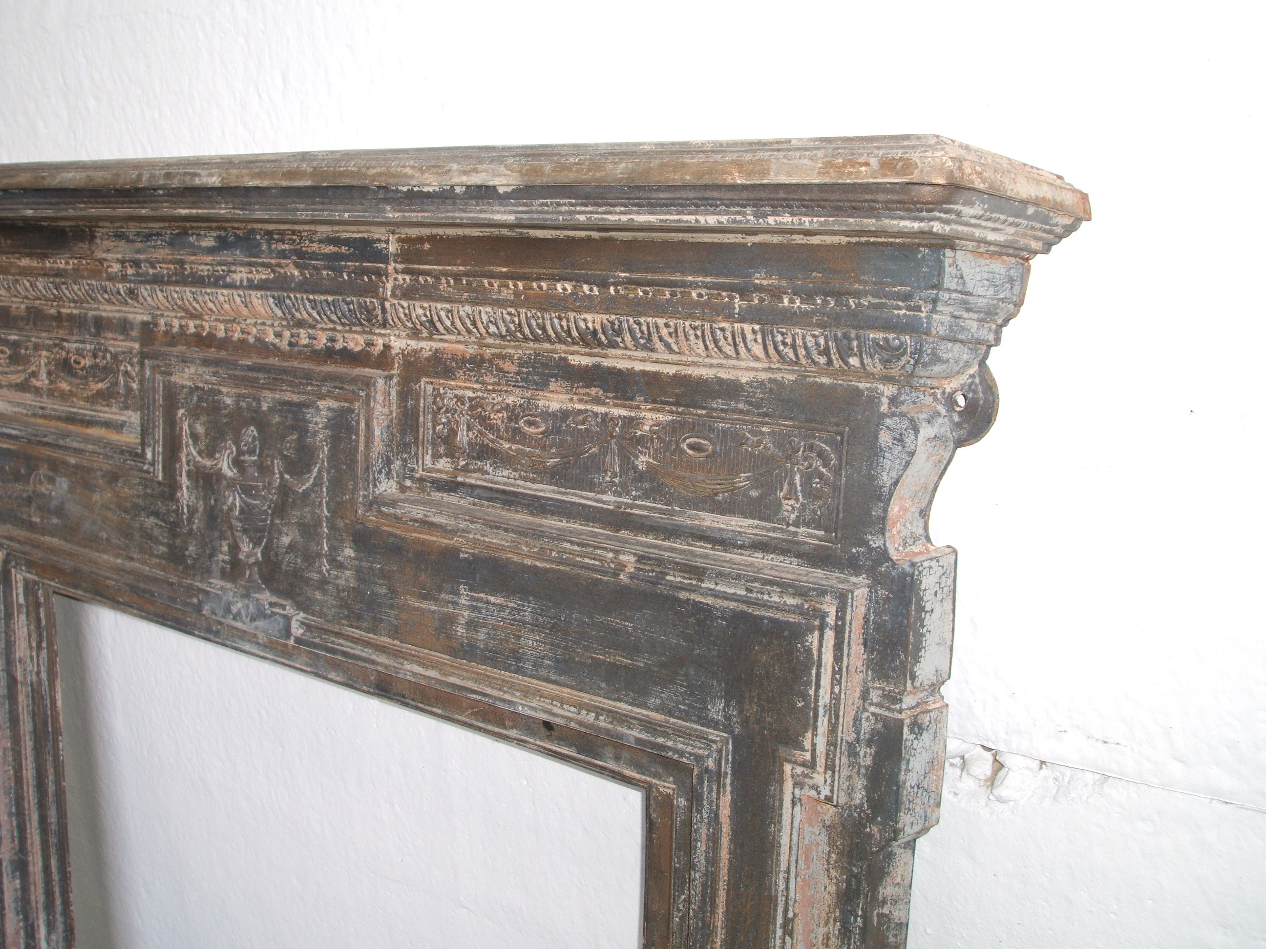 An original cast iron surround with a centre urn and bows and swags. AWAITING RESTORATION. SOLD