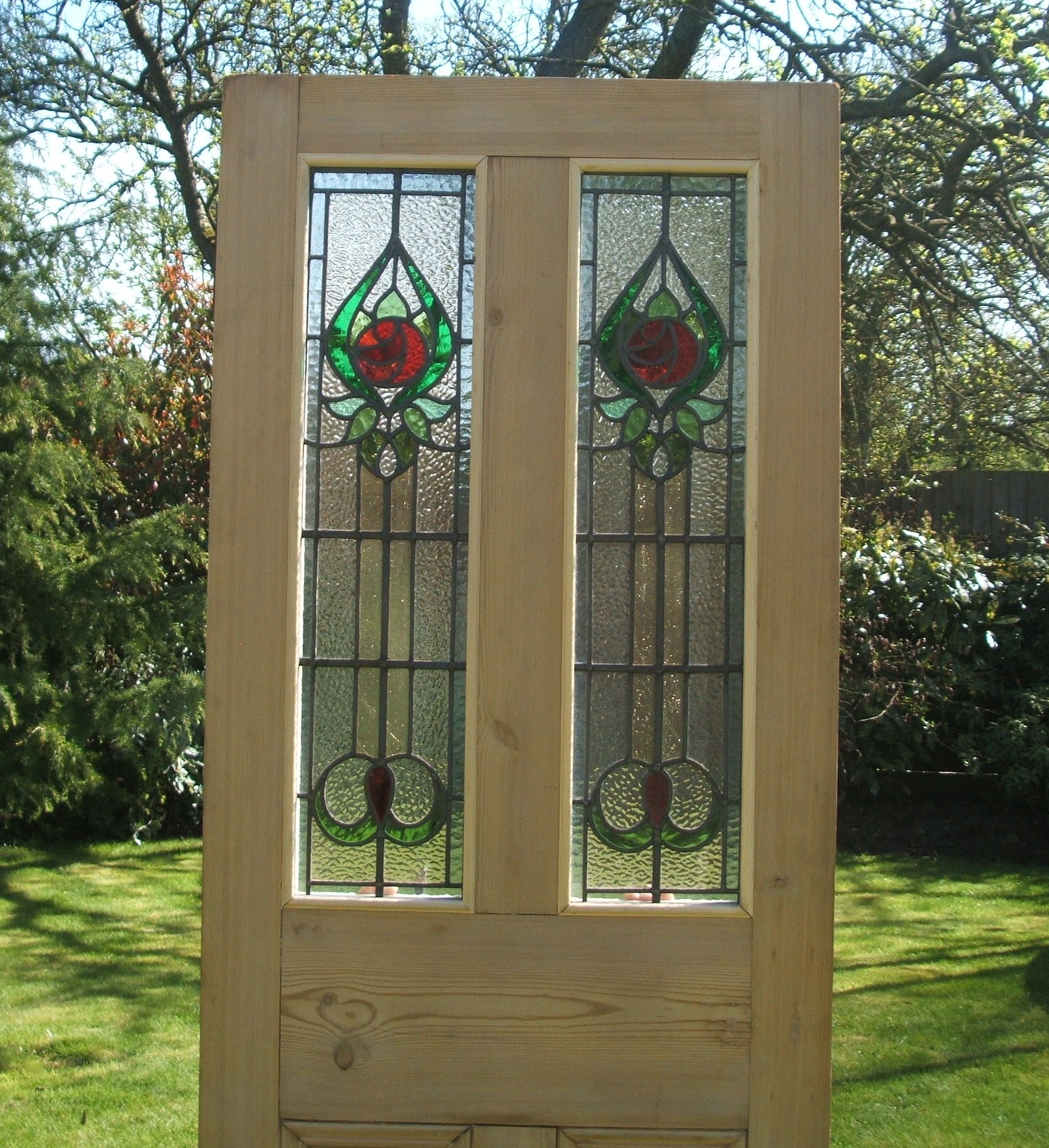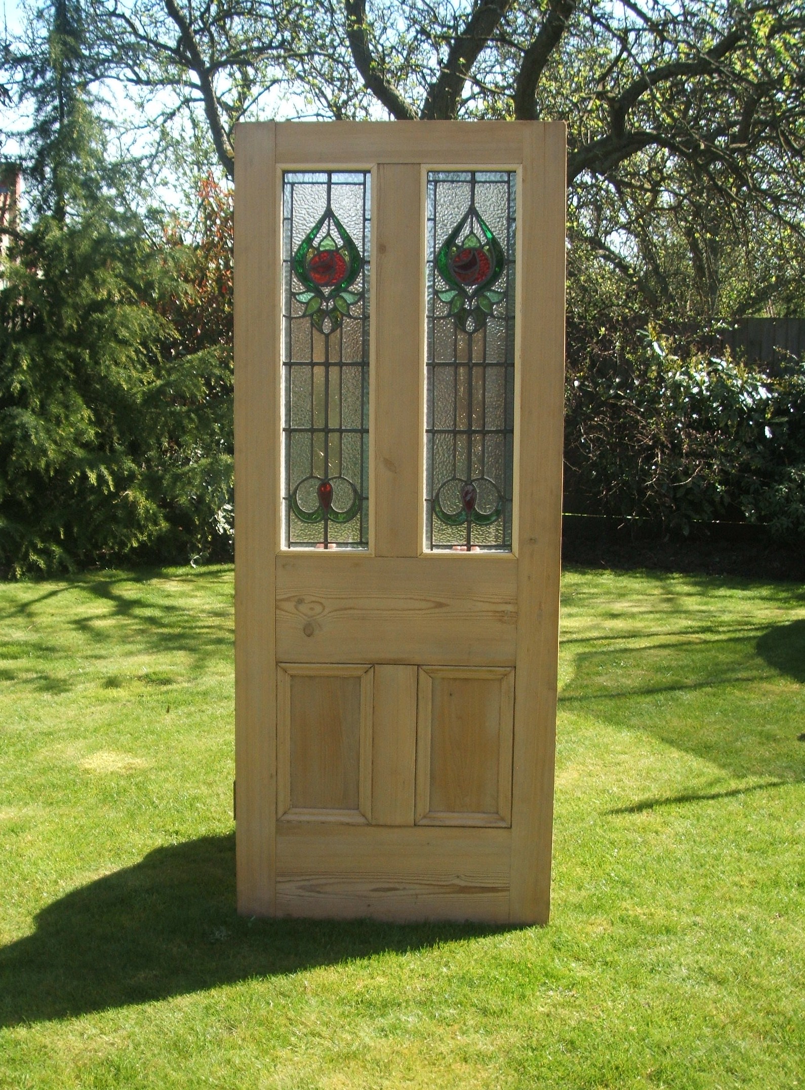 SOLD A beautiful pine door with leaded and coloured glass panels. Contact us on 07885 379772 or email us below for more details. Delivery Available.
