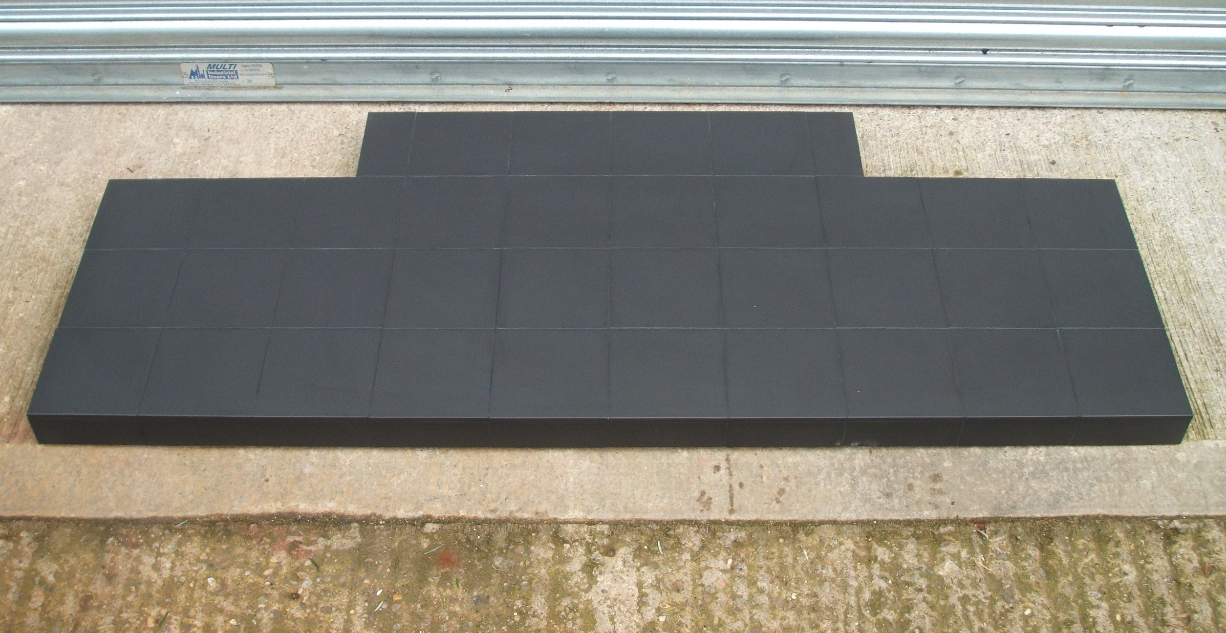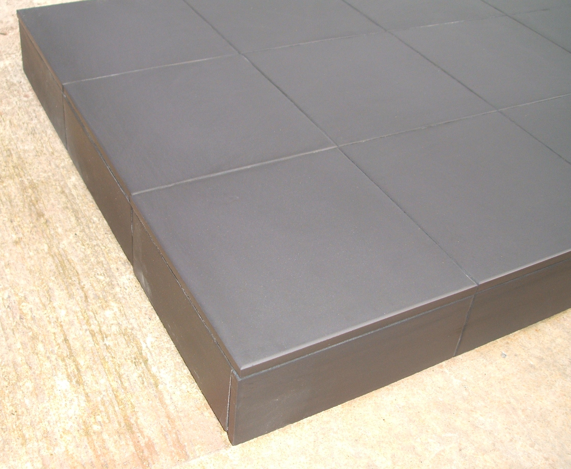 A matt black tiled hearth - very similar colour to natural slate and the tile is coloured throughout and is very hard wearing. These can be made to measure. Contact 07885 379772 or email below. Delivery Available.