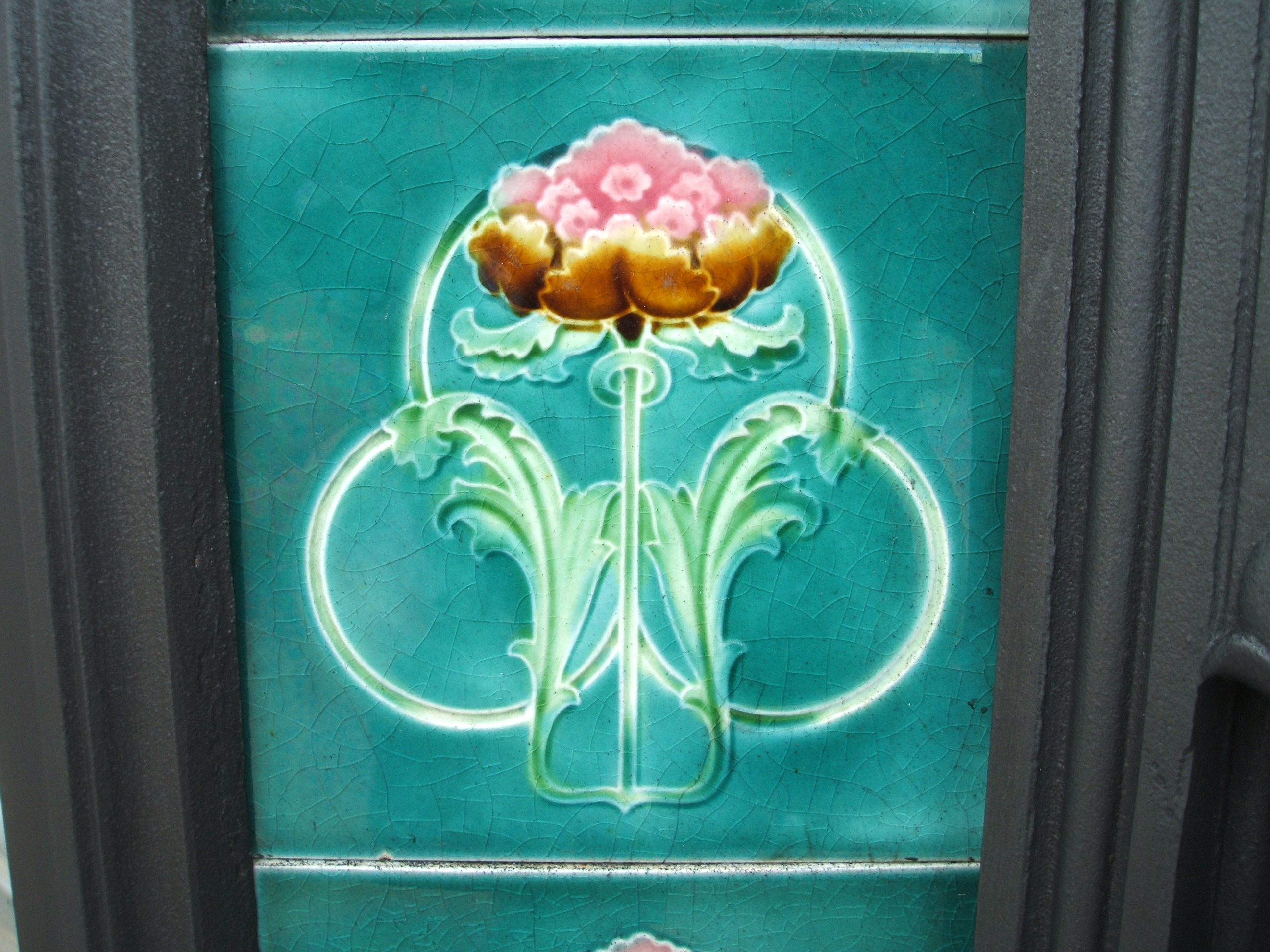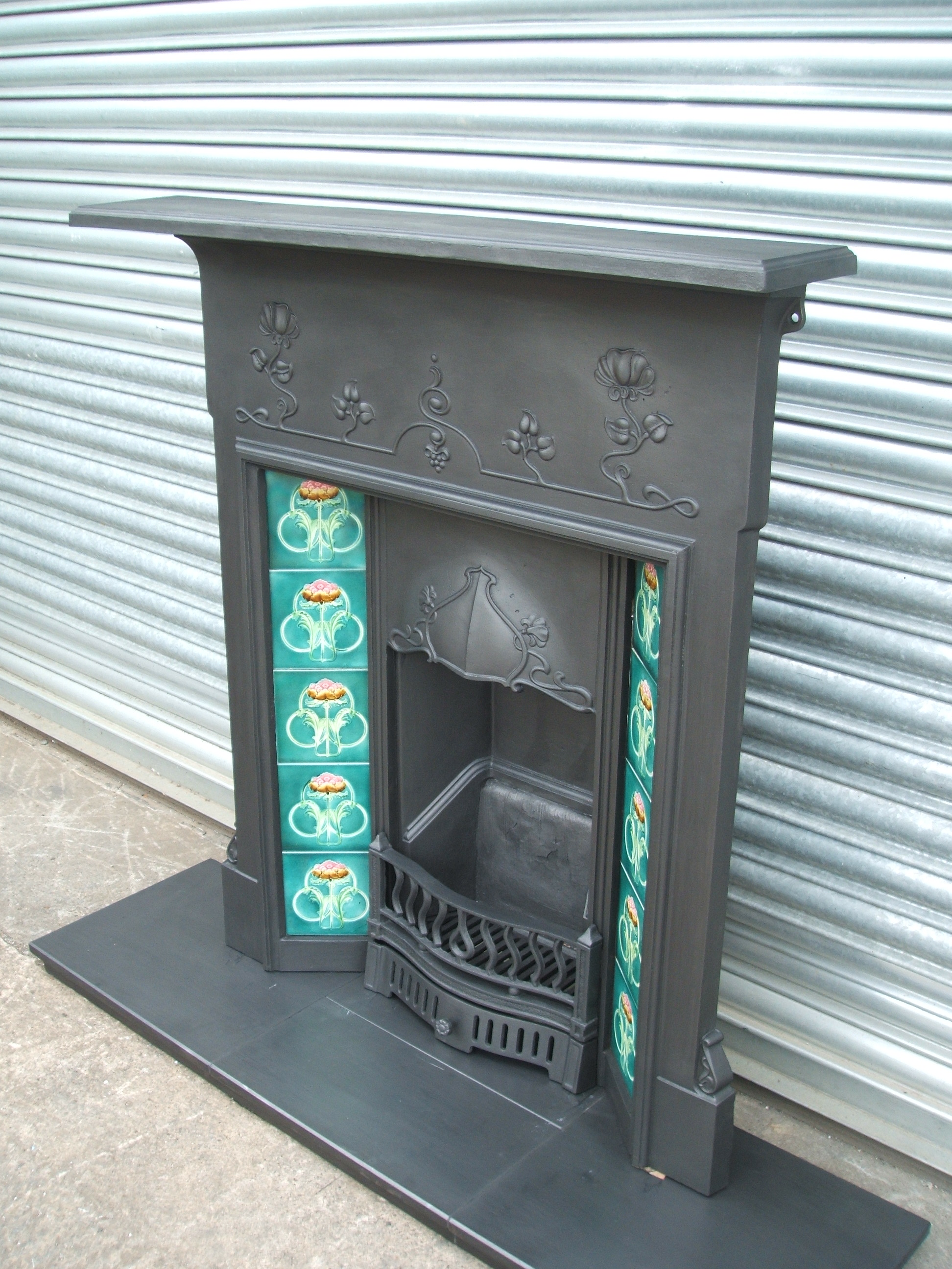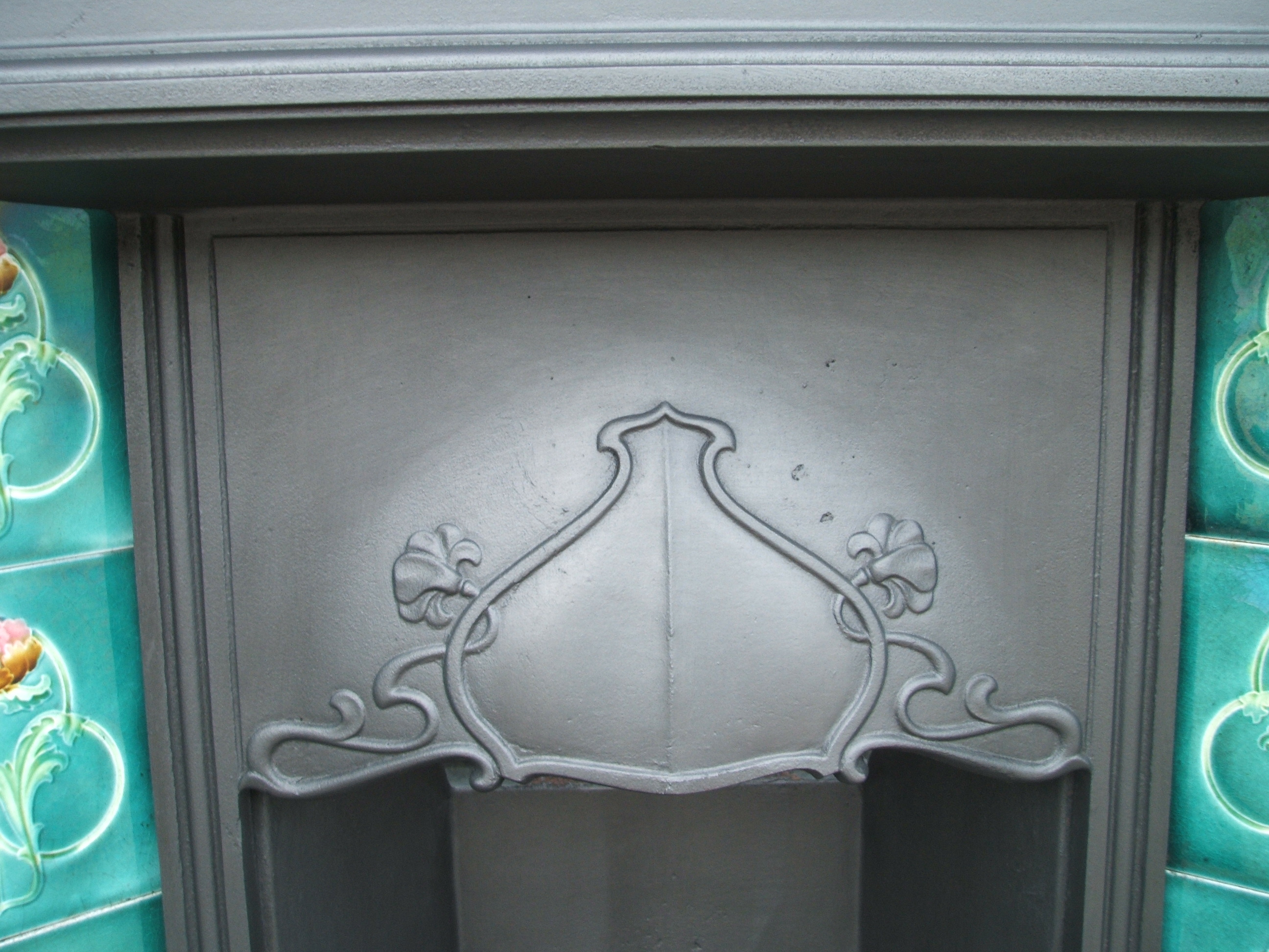 Original Antique Art Nouveau cast iron tiled combination fireplace - Ref CF60