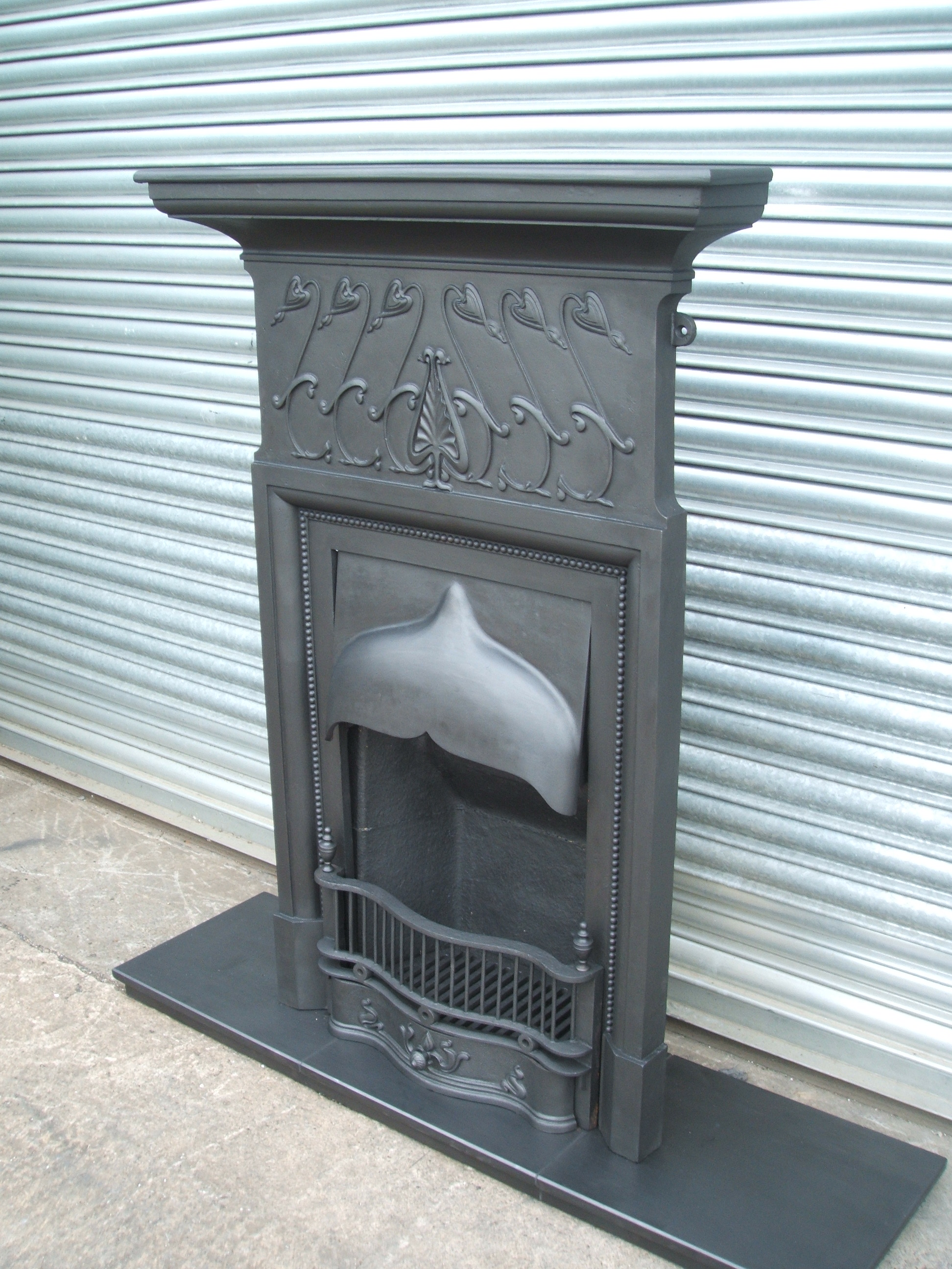 Original Antique Art Nouveau cast iron combination fireplace - Ref CF63