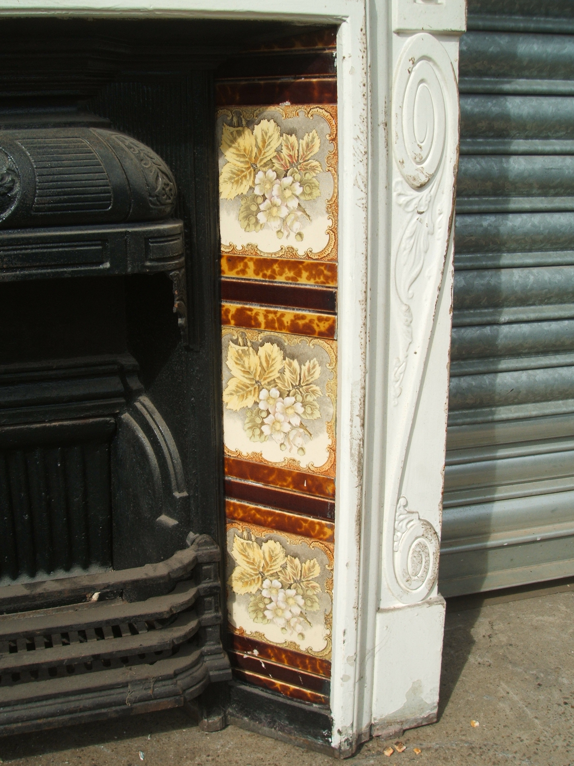 An original antique Victorian cast iron combination fireplace complete with original floral printed and majolica set of tiles. SOLD