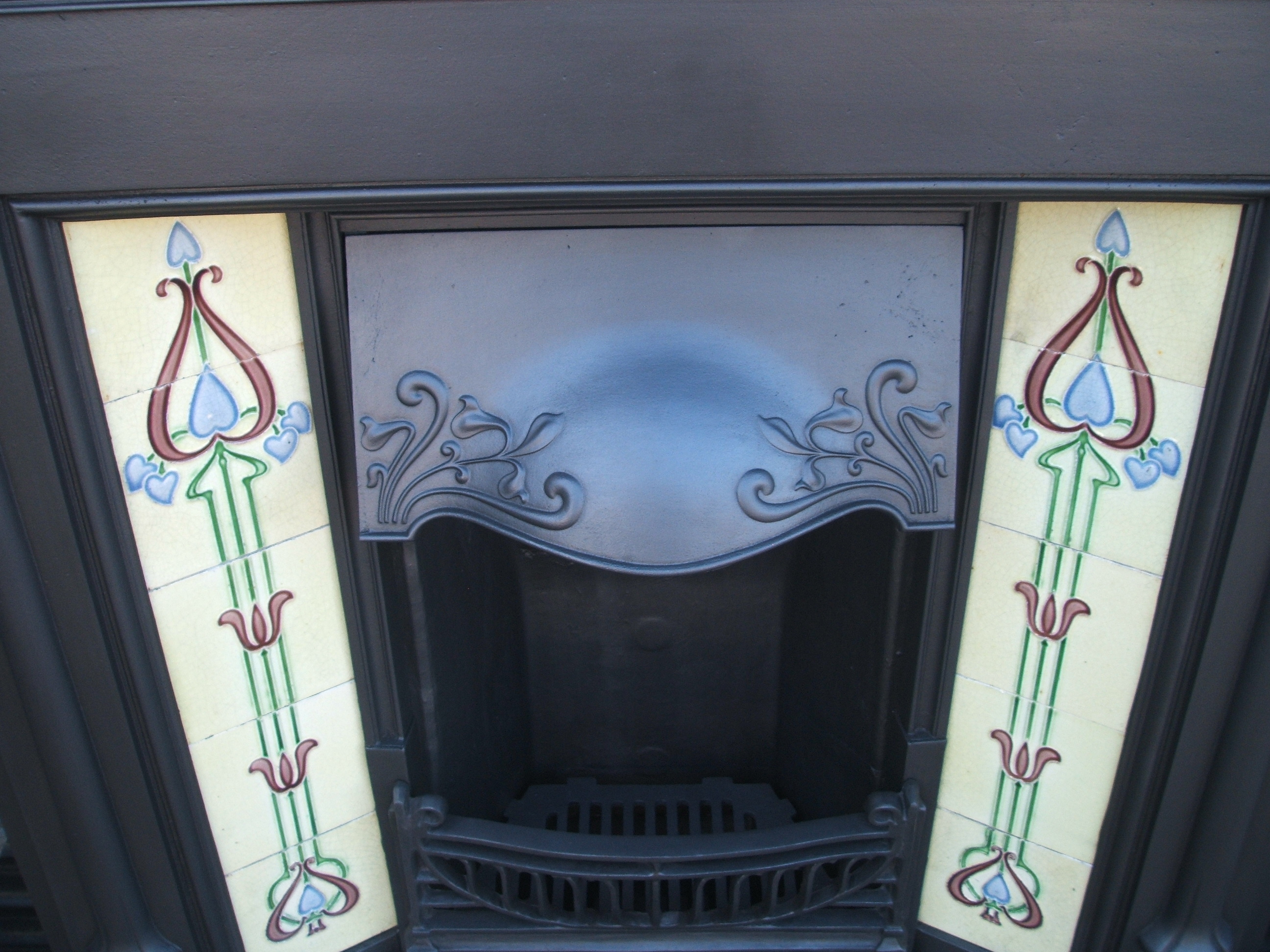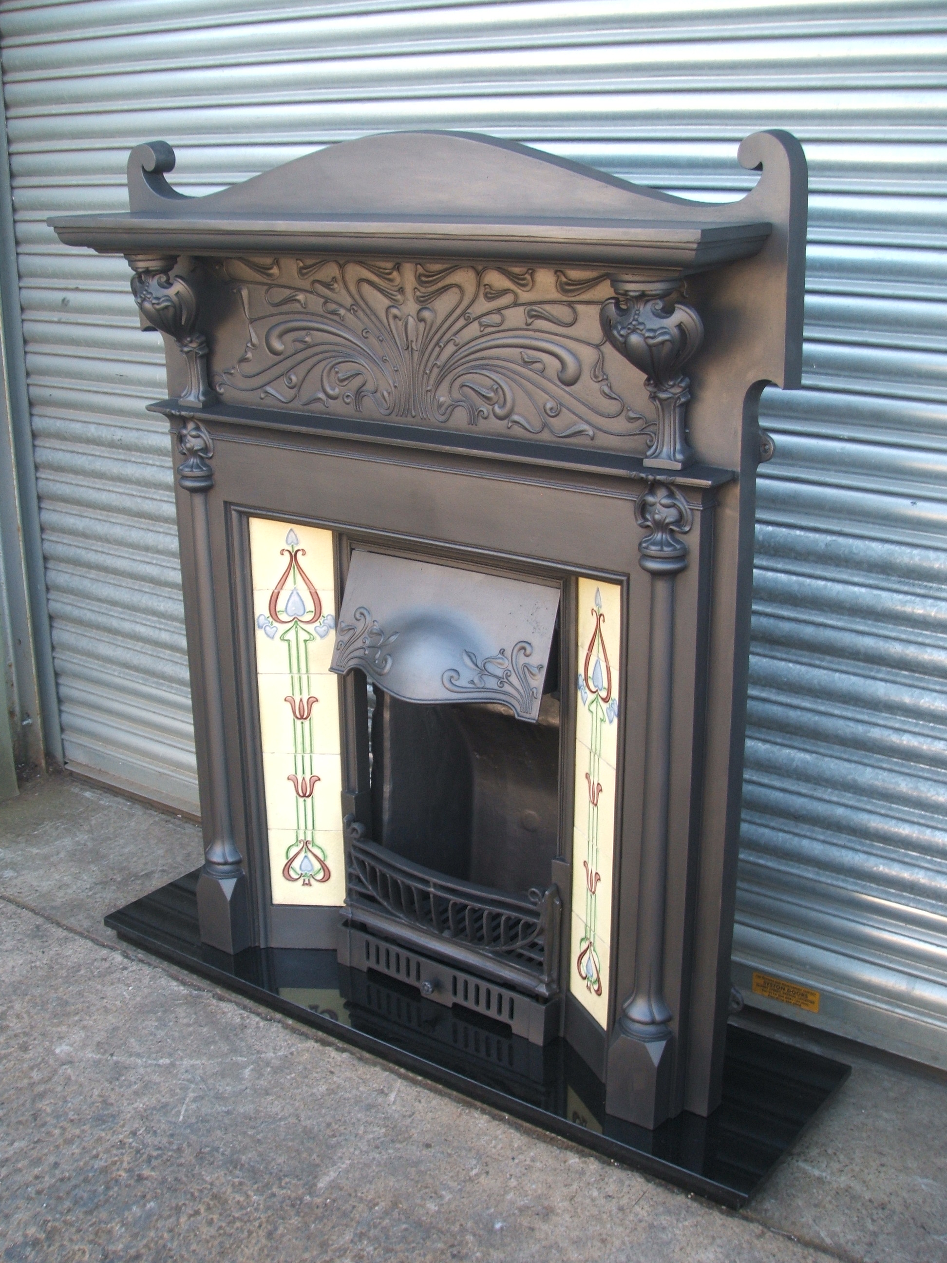 Rare Original Antique Art Nouveau Cast Iron combination tiled fireplace - Ref CF102