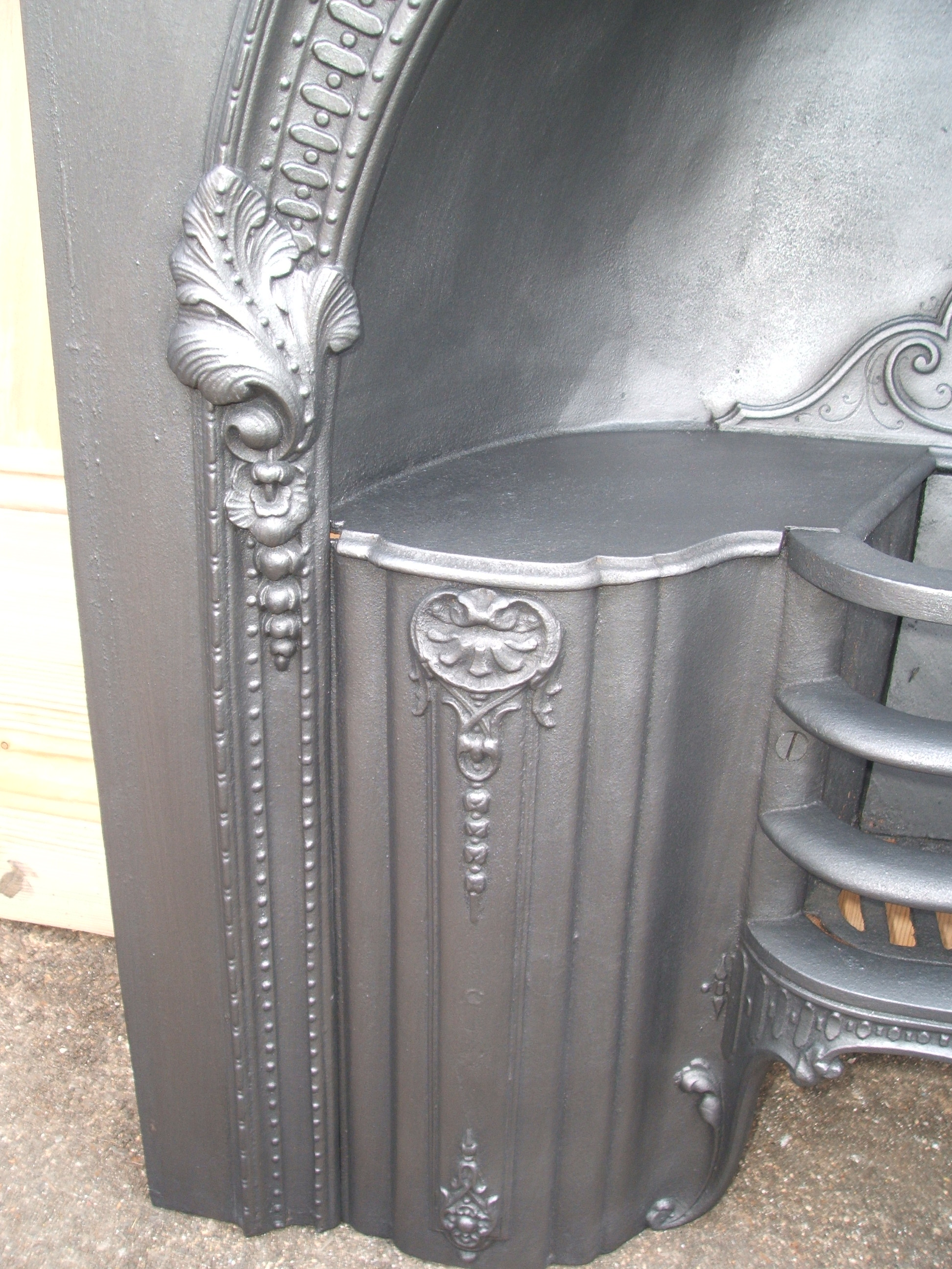 A Victorian Arched cast iron register grate with leaves and pretty delicate beading. English C1860. Contact us on 07885 379772 or email below for more details. Delivery is available.