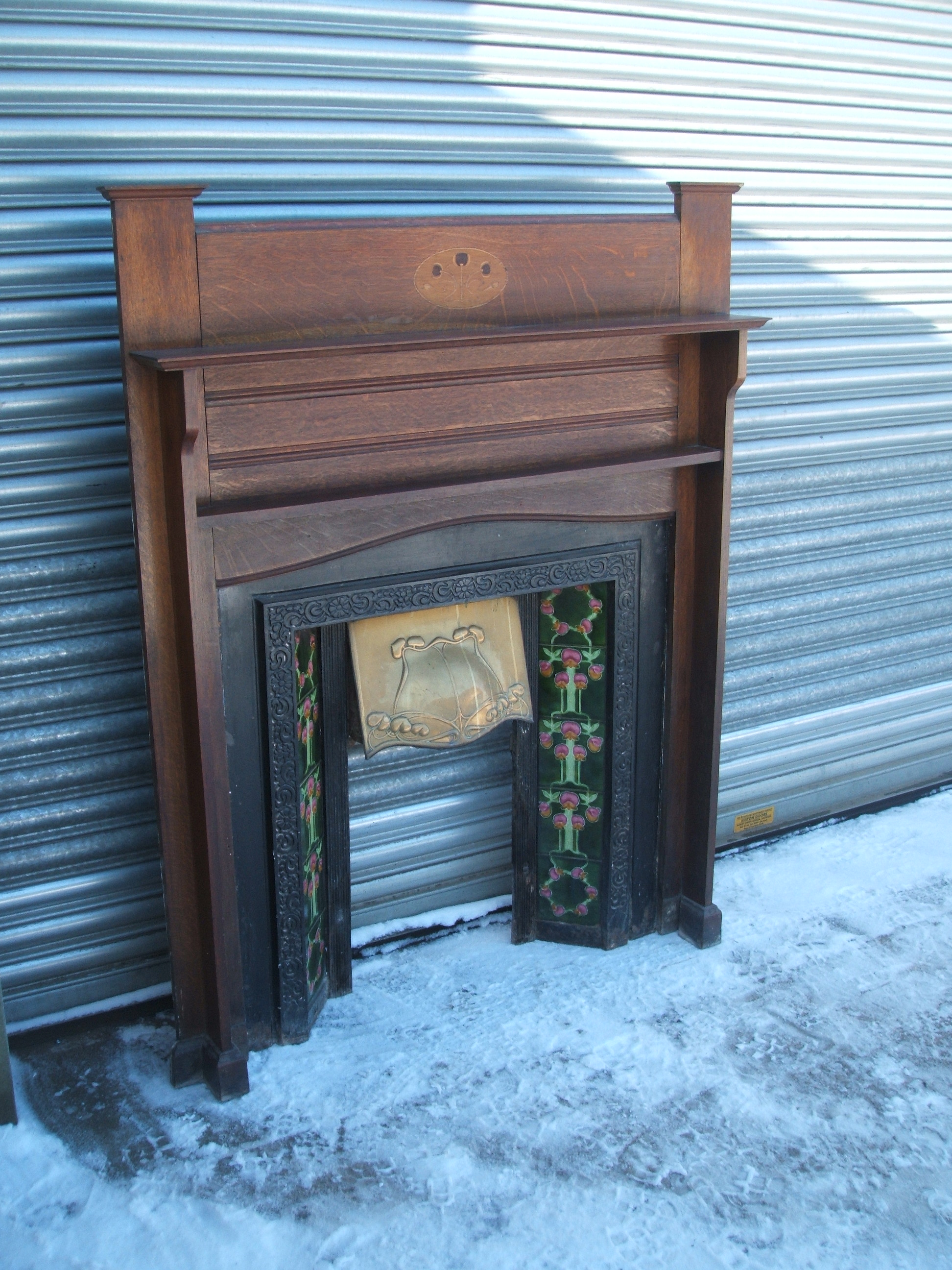 Original Antique Arts and Crafts Oak Fire Surround - Ref WS19