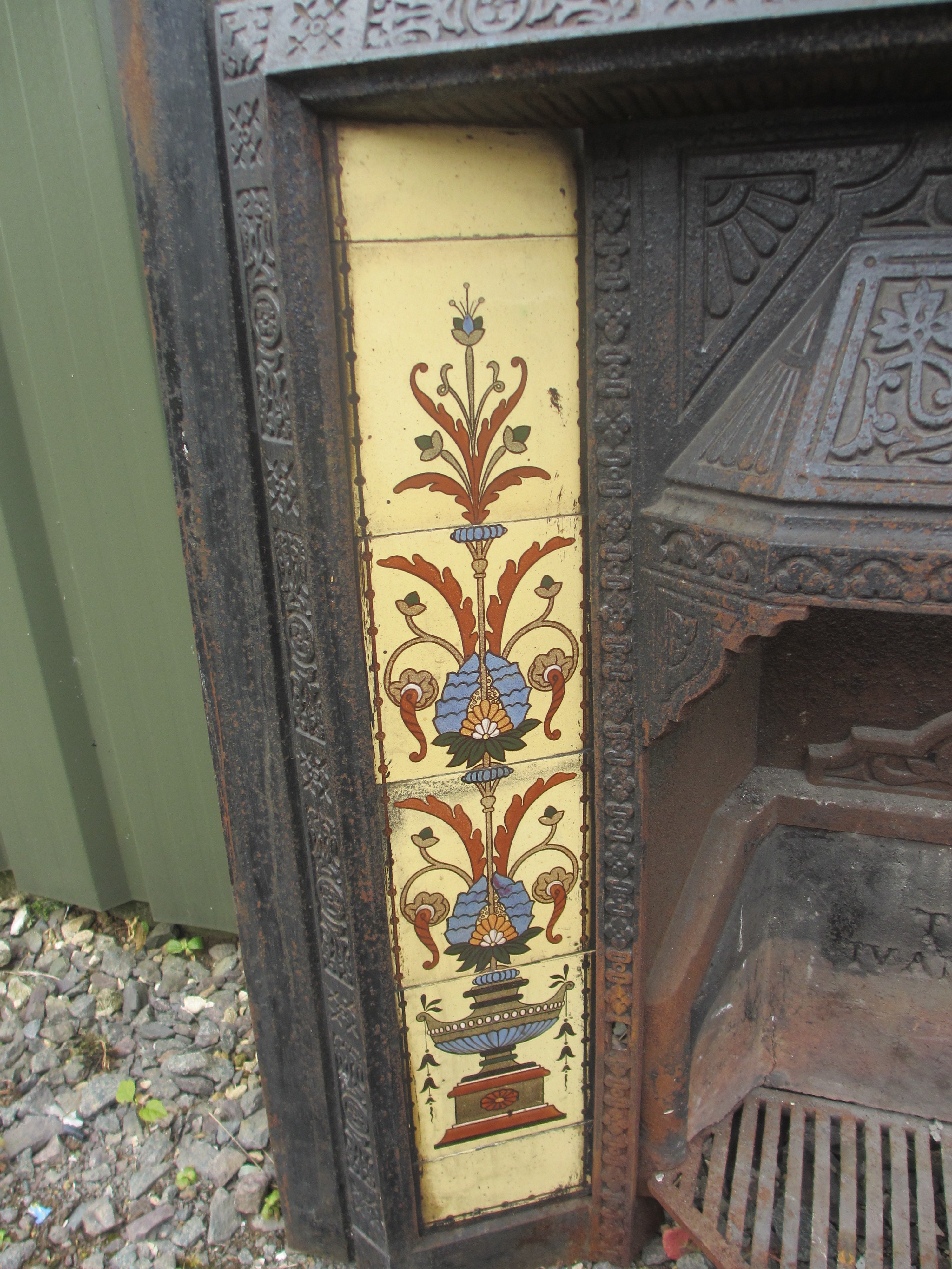 An original antique Victorian cast iron insert complete with an original running set of 10 tiles. AWAITING RESTORATION Contact us on 07885 379772 or email below for more information.