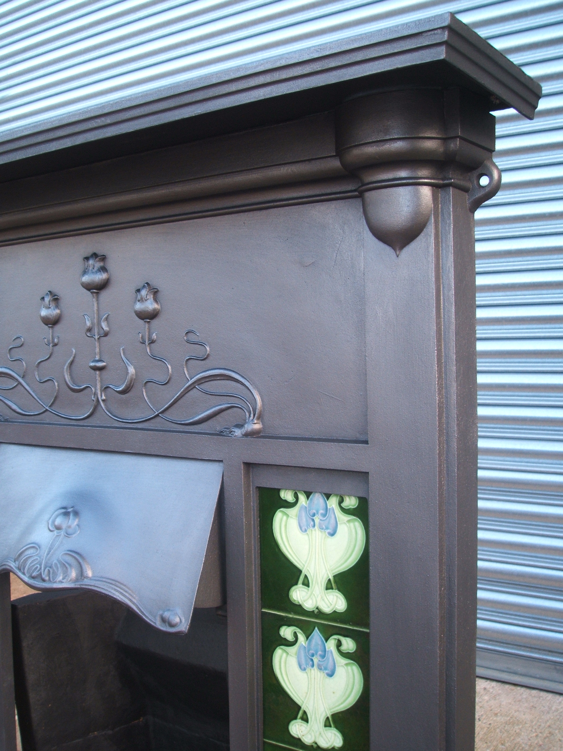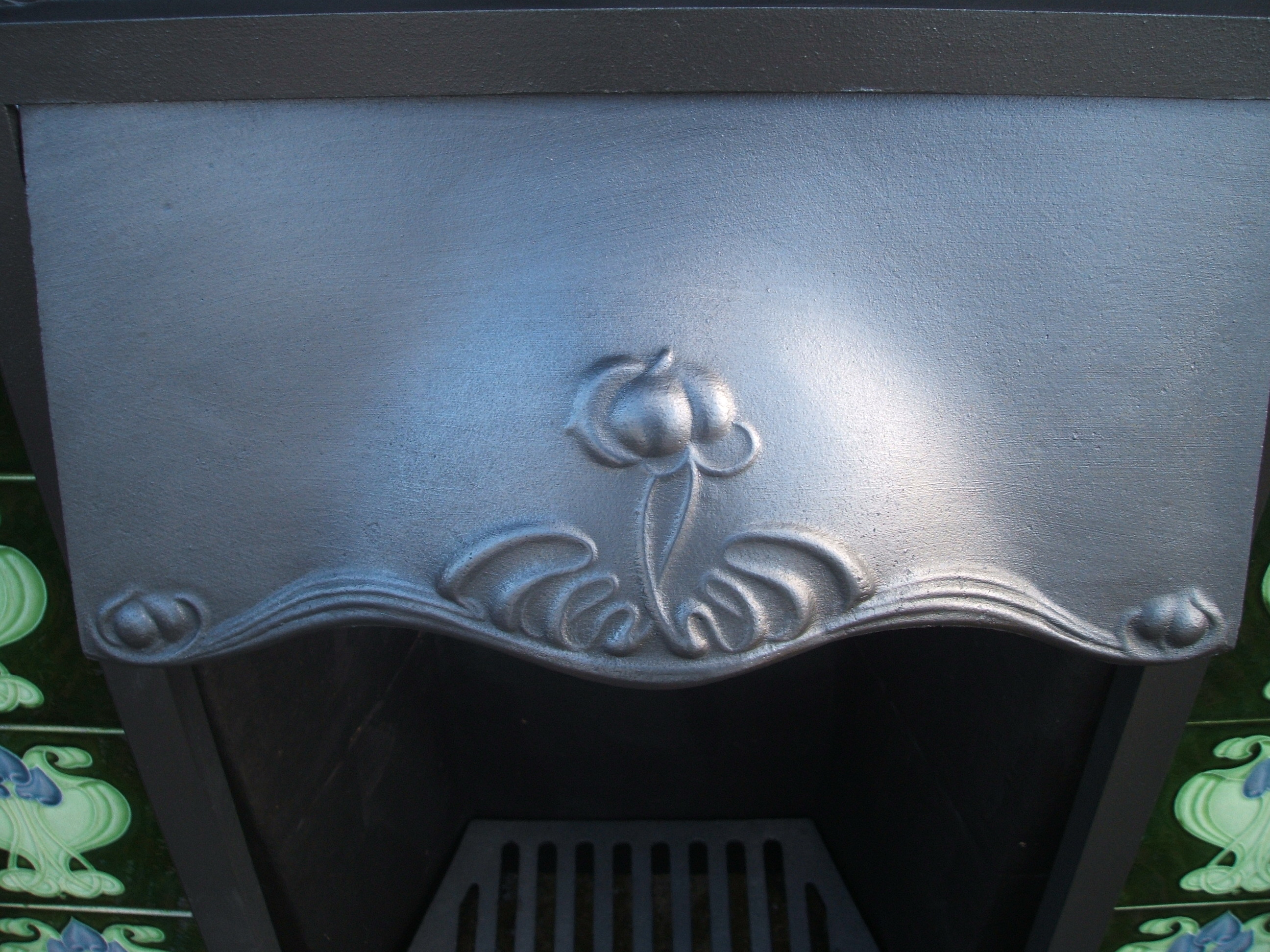 Original Antique Art Nouveau cast iron combination tiled fireplace - ref CF09