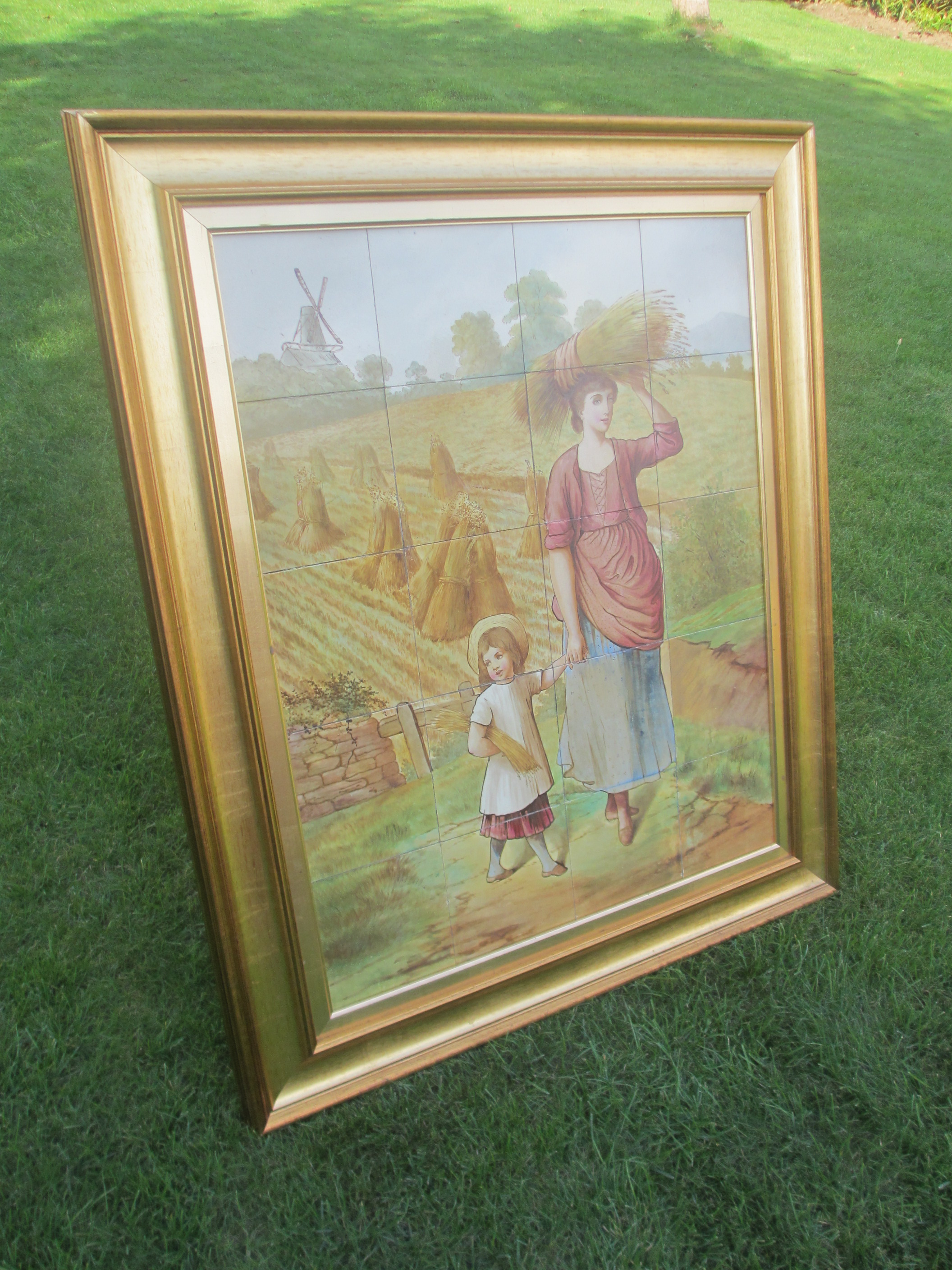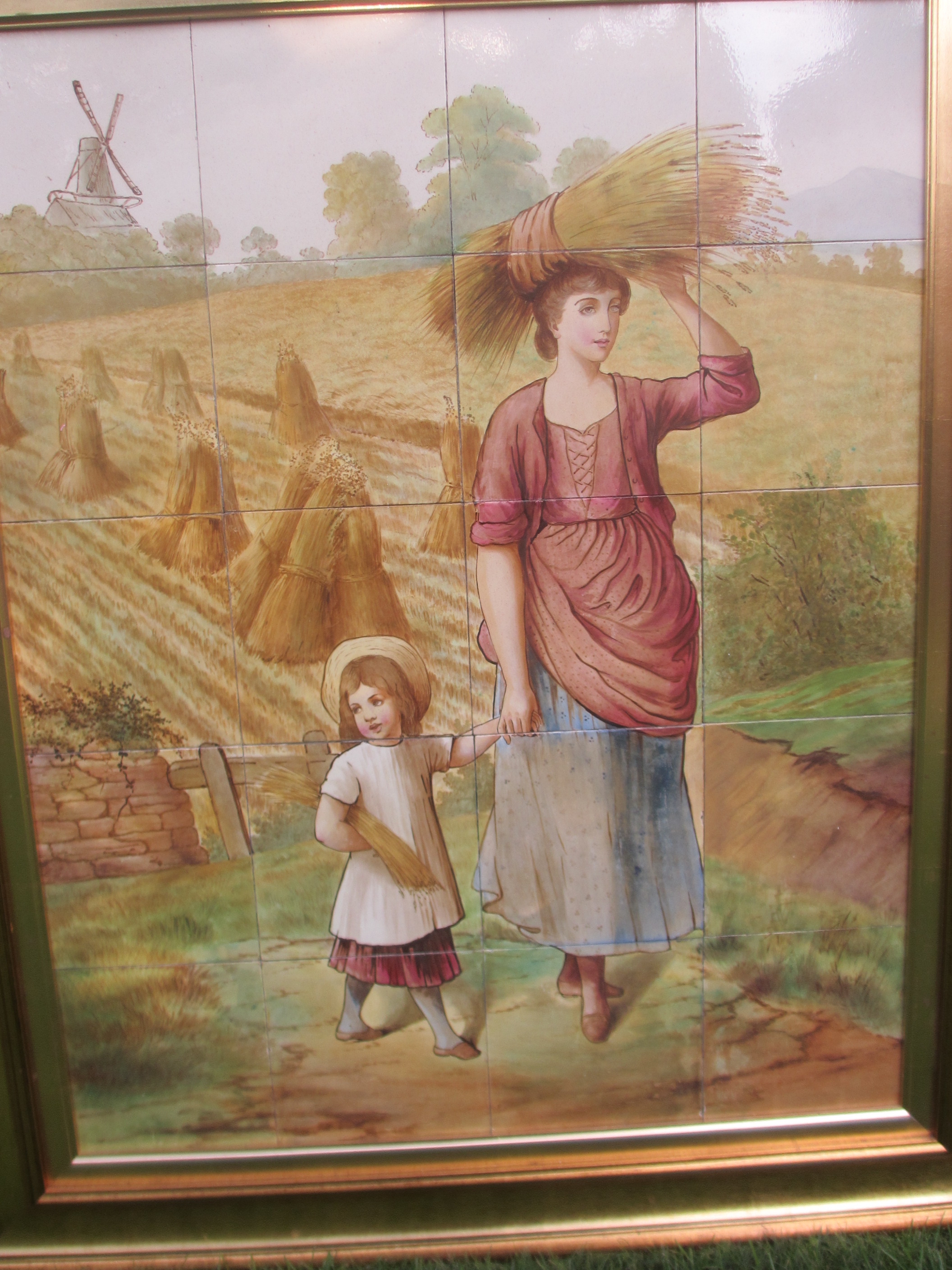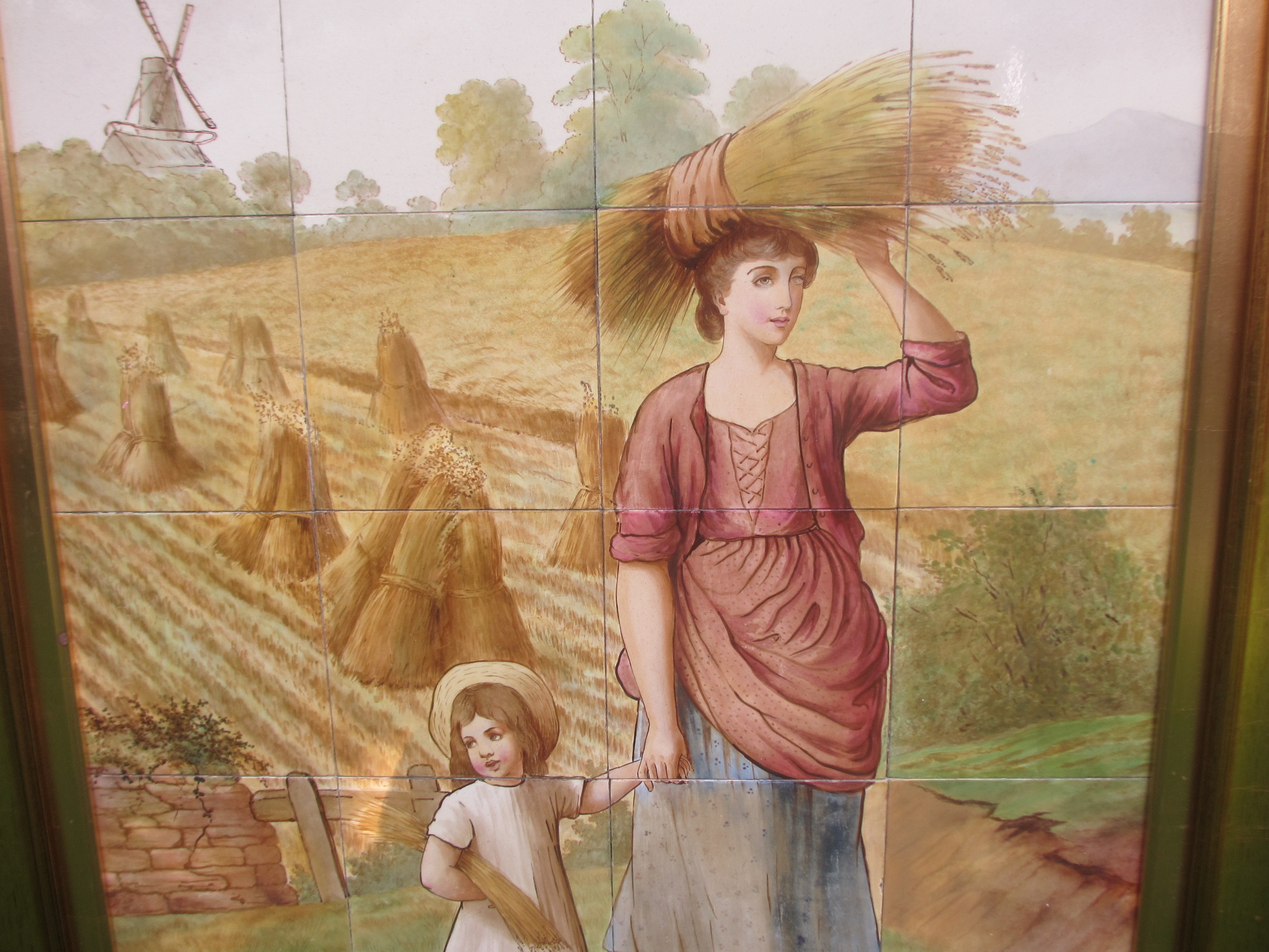 Original Antique Hand Painted Victorian Tiled Panel