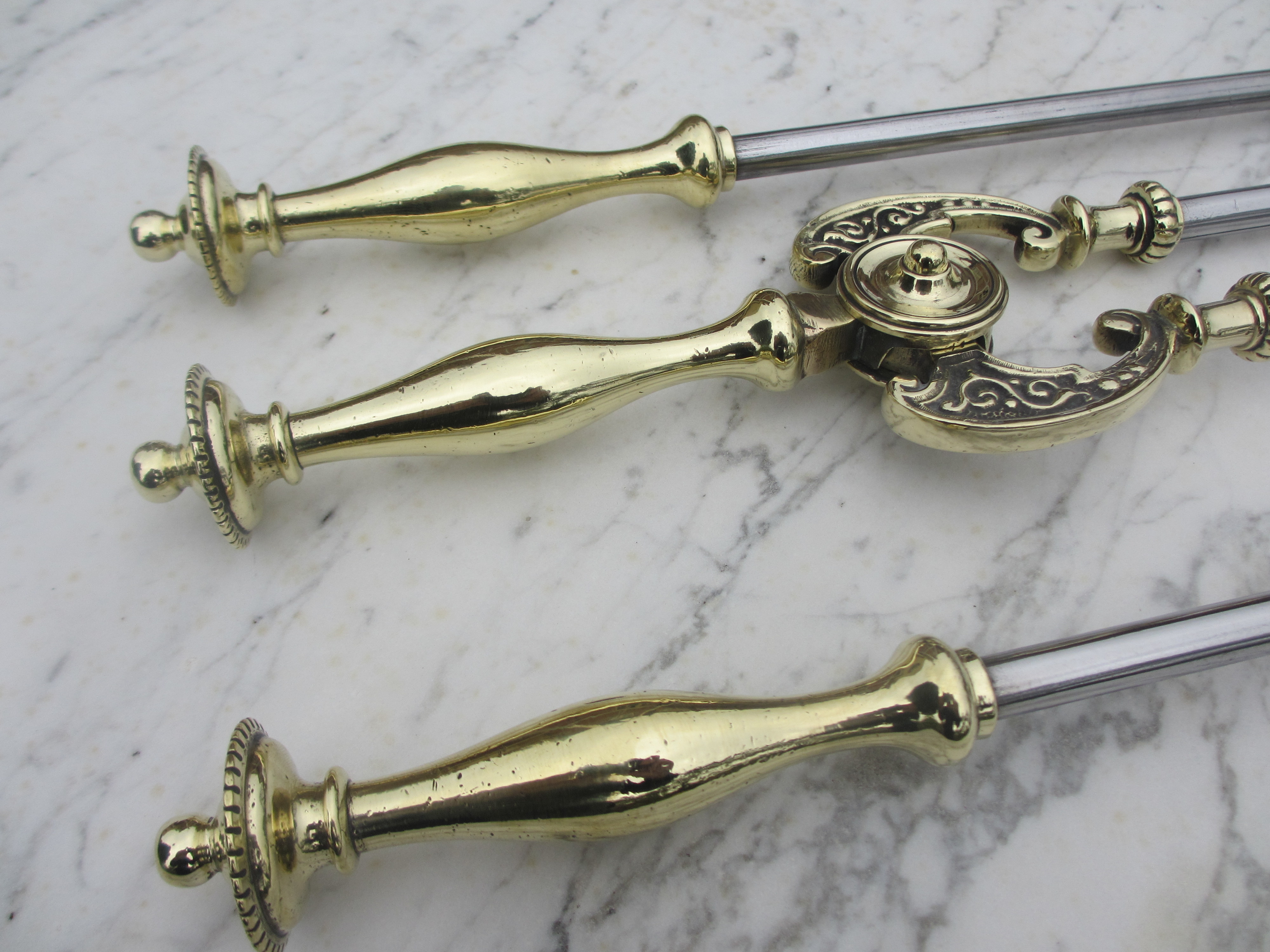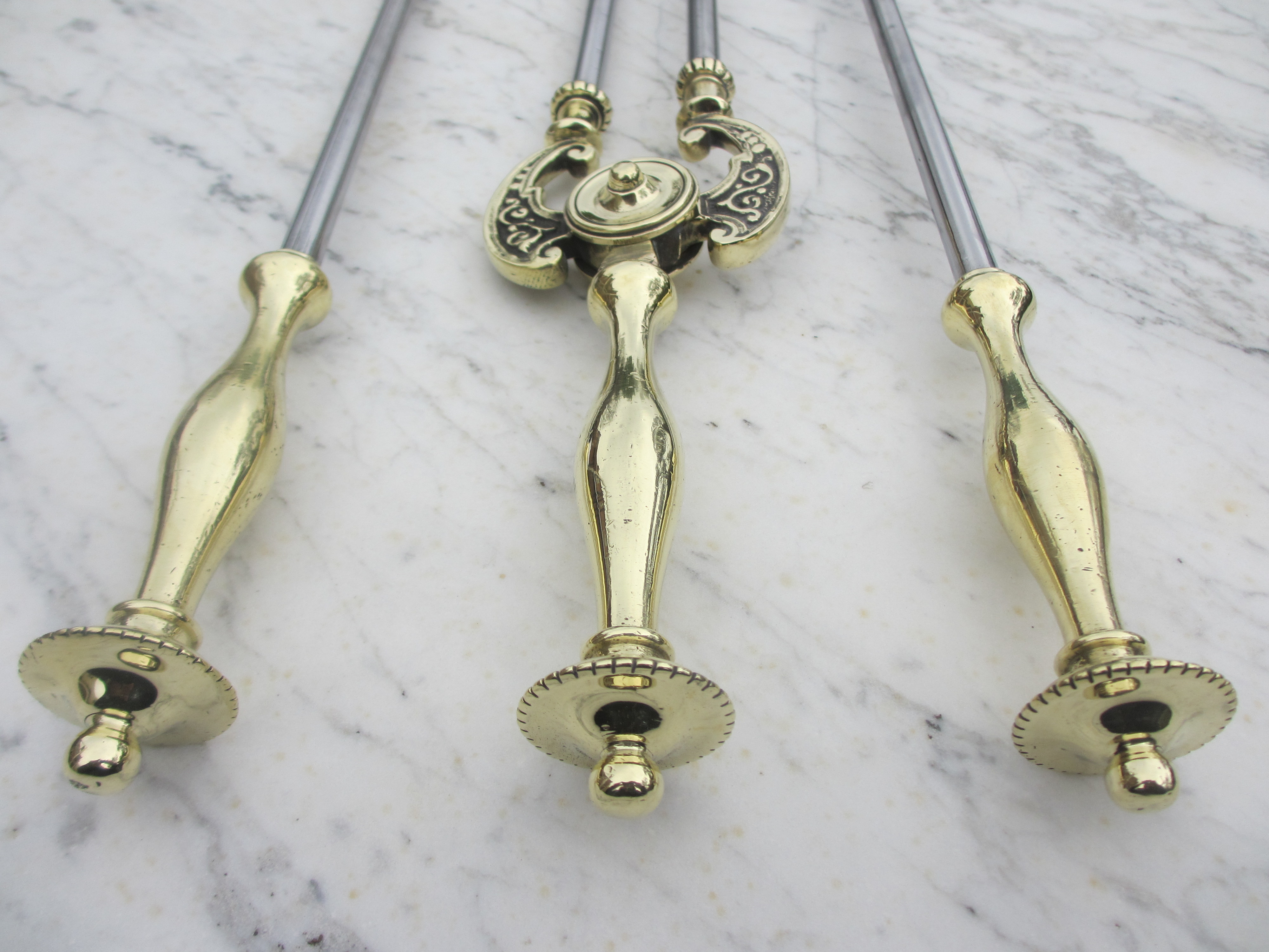 Original Antique Brass set of Fire Irons - Ref FA08