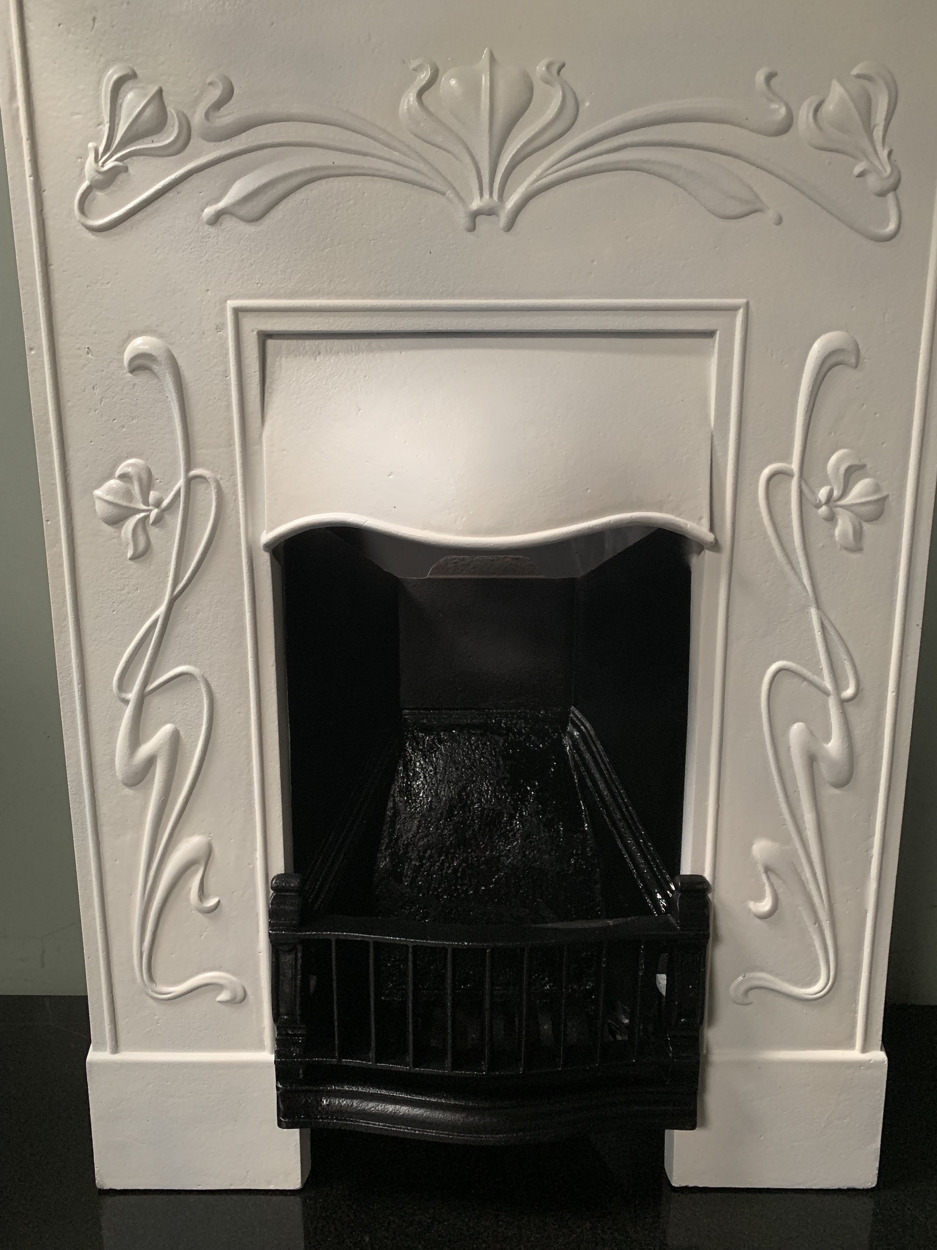 Original Antique Art Nouveau painted Cast iron Combination Fireplace - Ref CF237