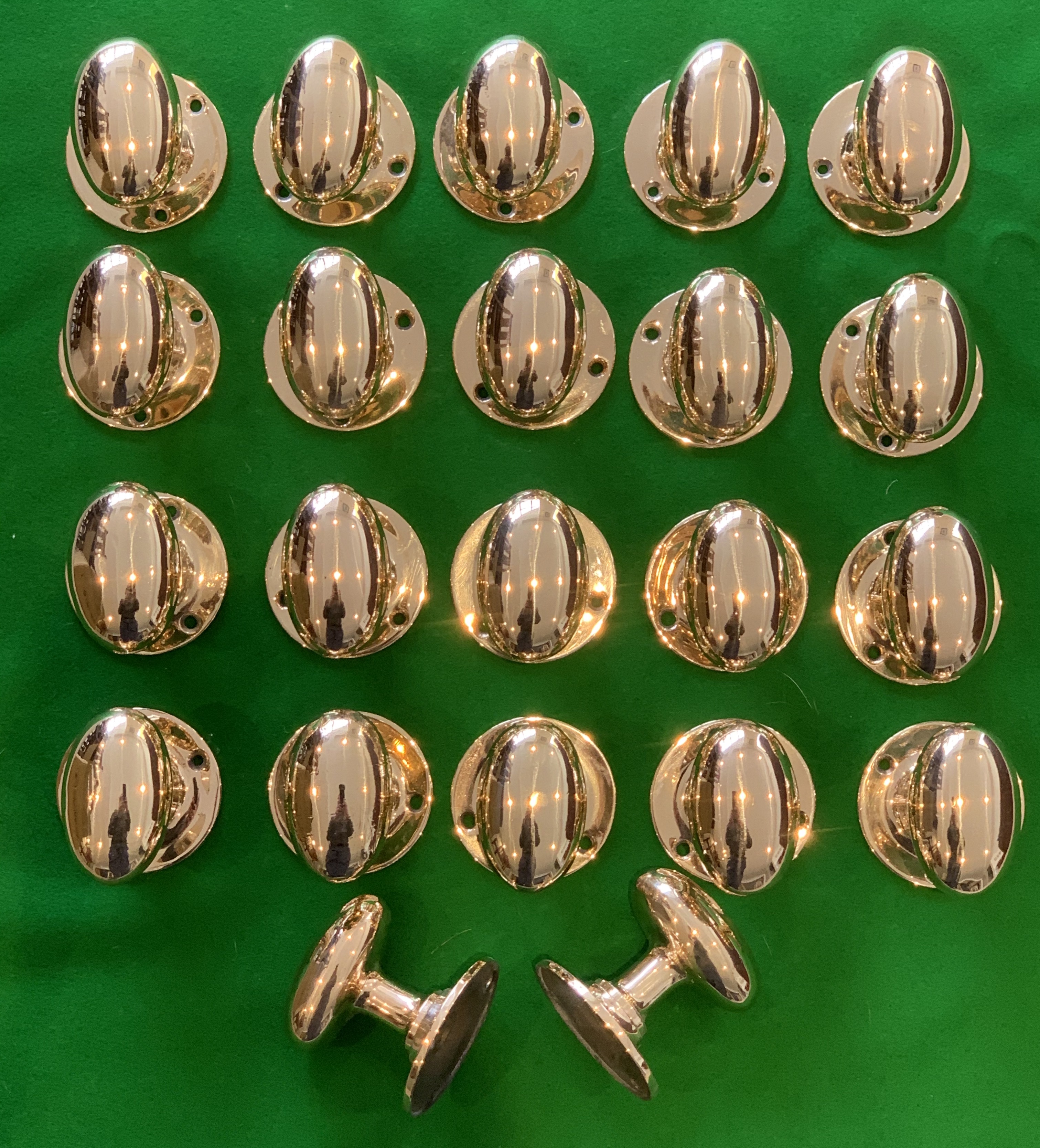 11 pairs Rose Brass Oval Door Knobs - Ref DF74