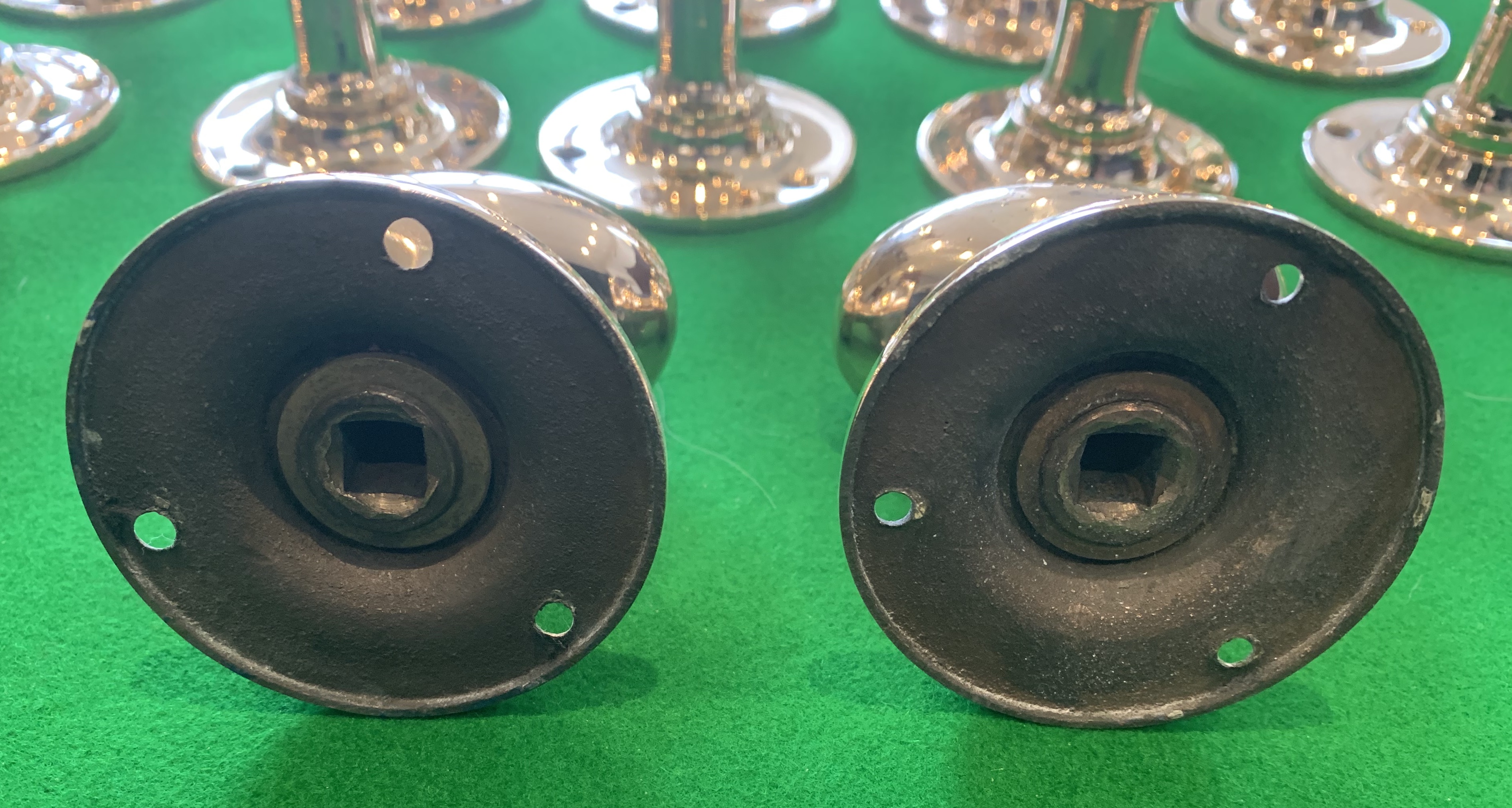 SOLD A stunning set of 11 pairs of rose brass oval door knobs. These have been beautifully polished and are in excellent condition and will be complete with spindles for each pair. Contact us on 07885 379772 or message below for more information or to purchase.