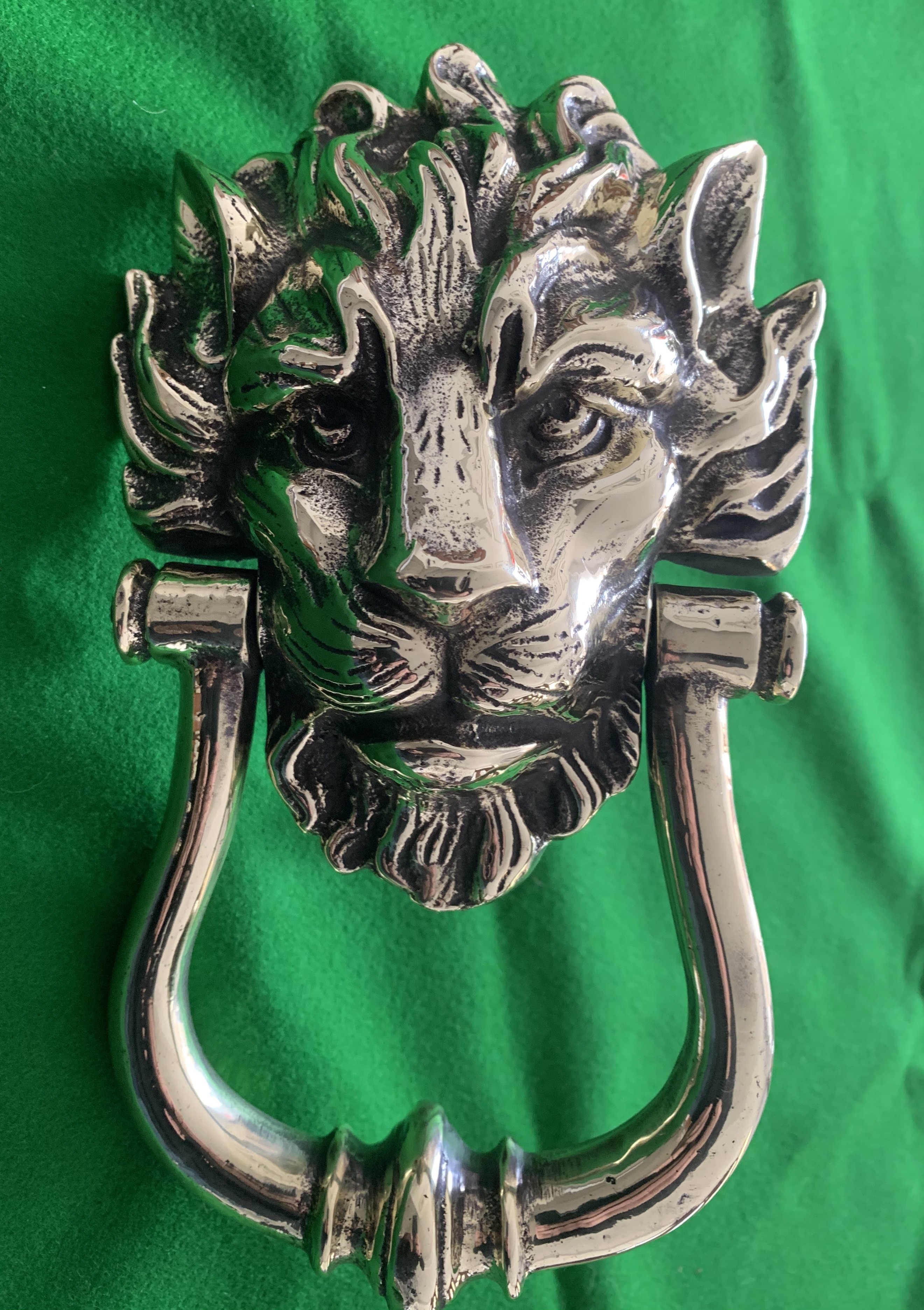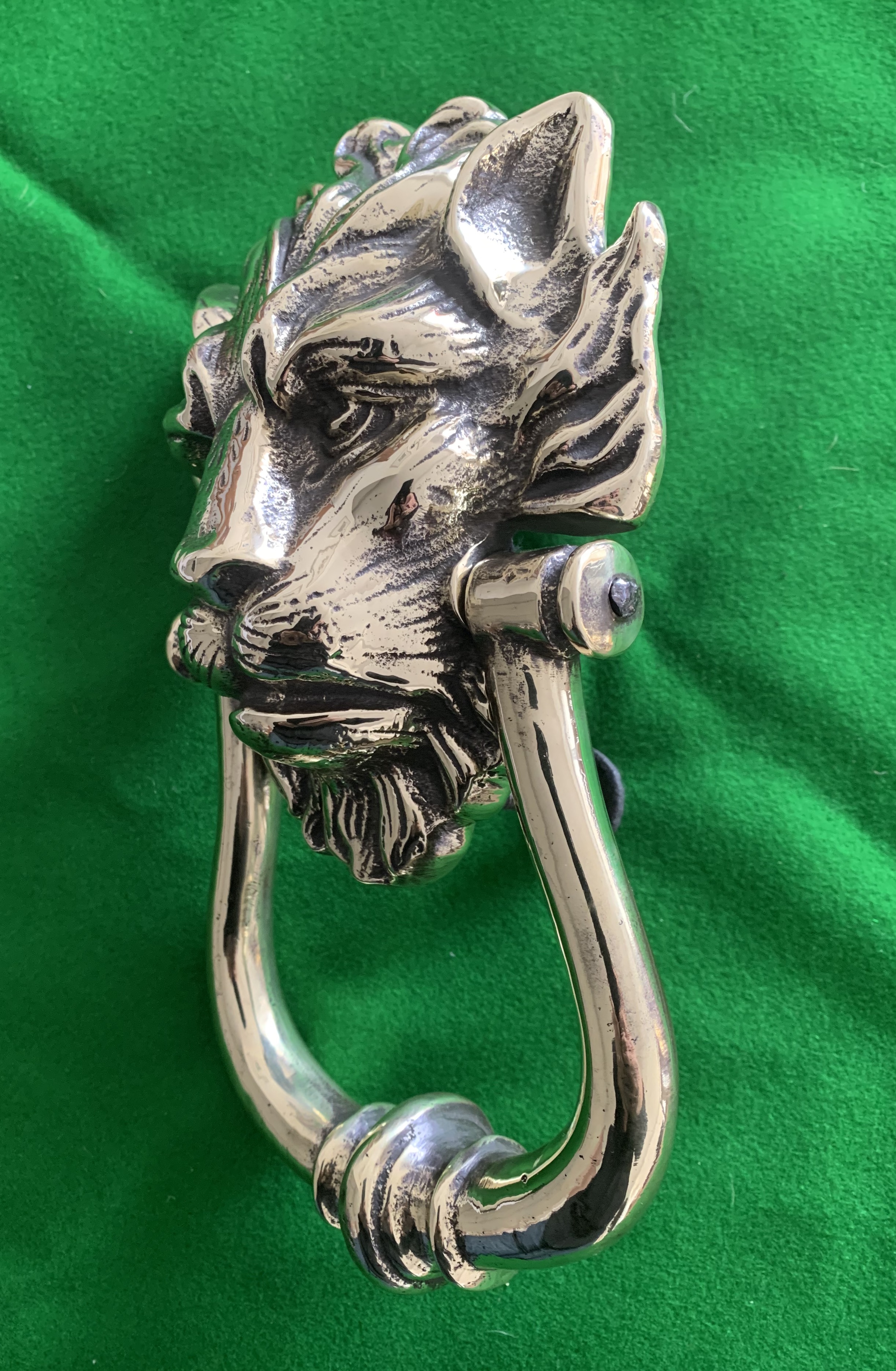 Original Antique Large Brass Lion Head Door Knocker - Ref DF82