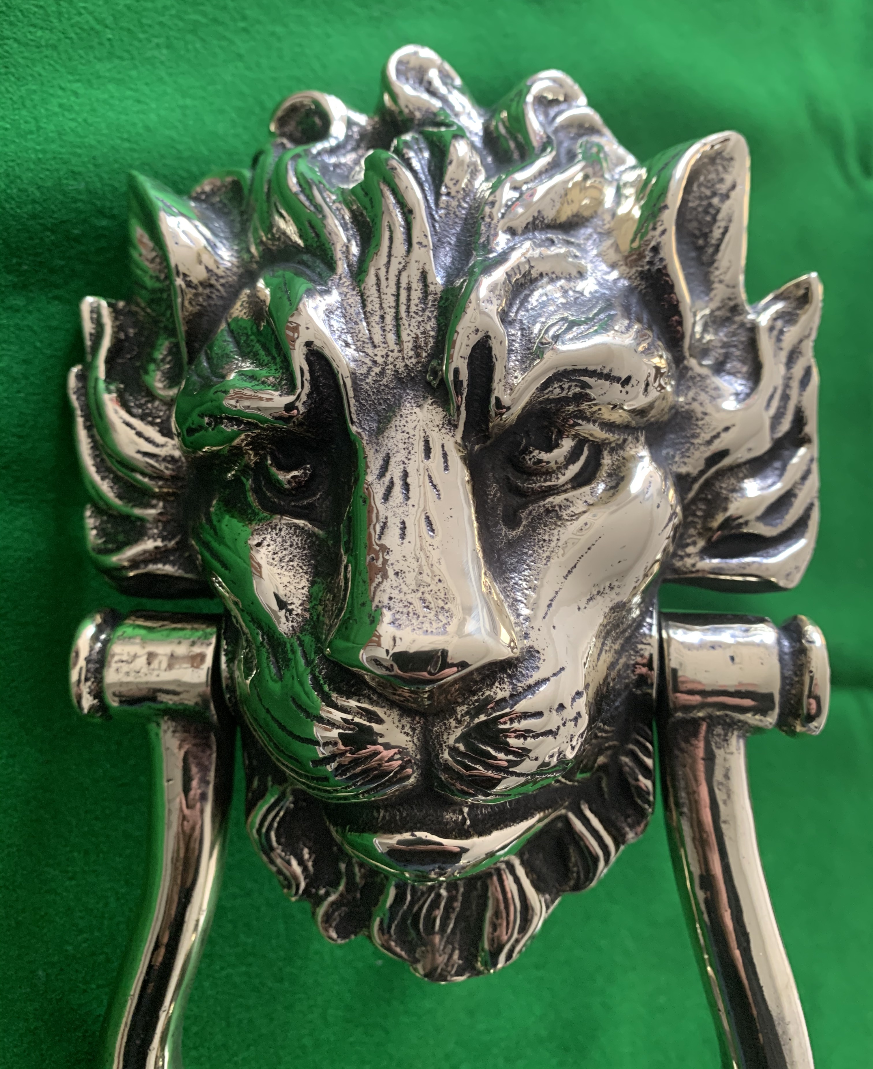 A stunning large size, very heavy, original antique Lions Head Brass Door Knocker with its original brass striker plate. This has been cleaned and polished ready to install on your front door. Contact us on 07885 379772 or email below for more information or to purchase.