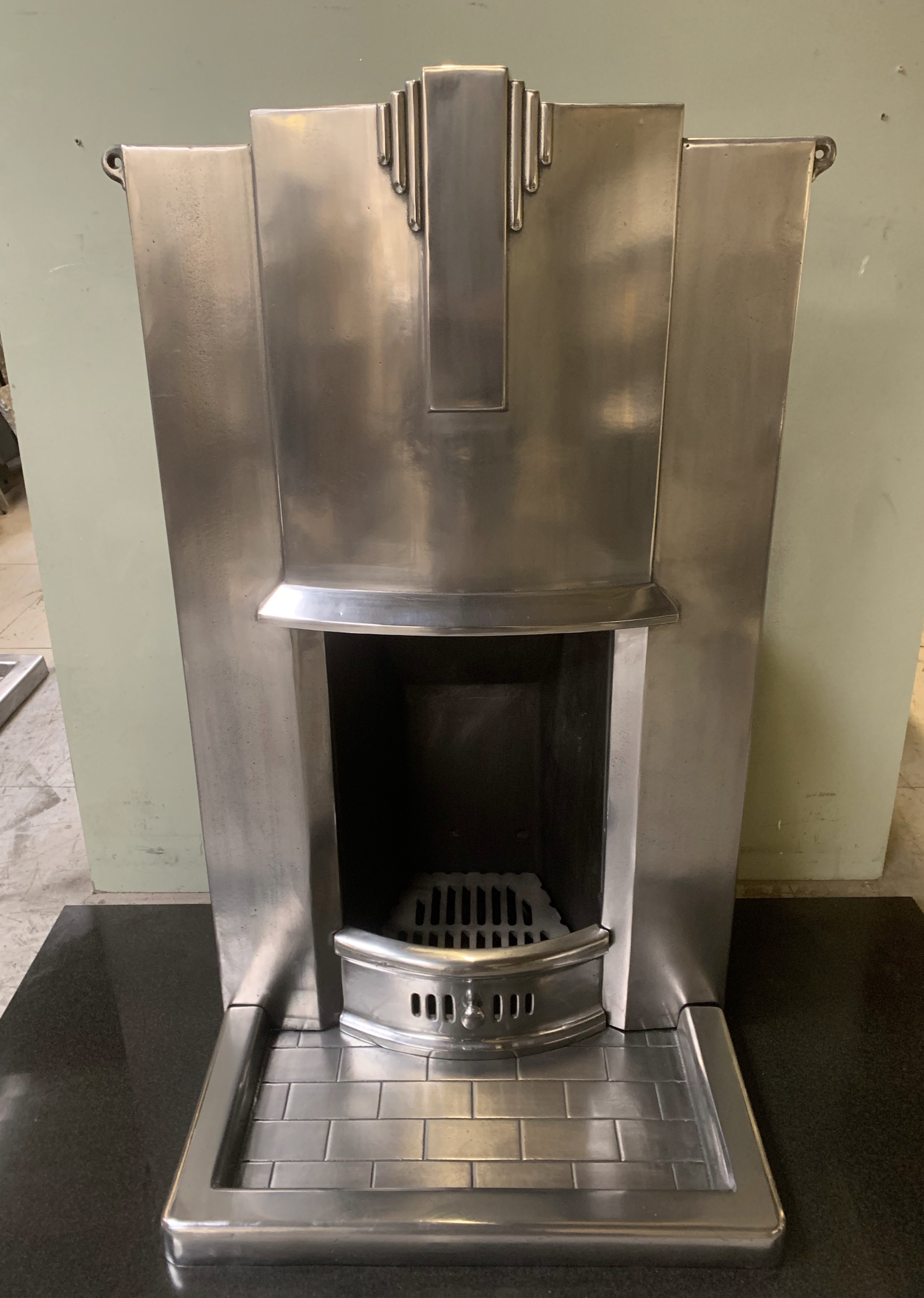 Original Antique Art Deco Polished Cast Iron Combination Fireplace - Ref CF257
