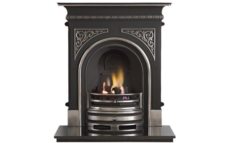 New Gallery CELTIC HIGHLIGHTED cast iron fireplace + granite hearth package - Ref RF14