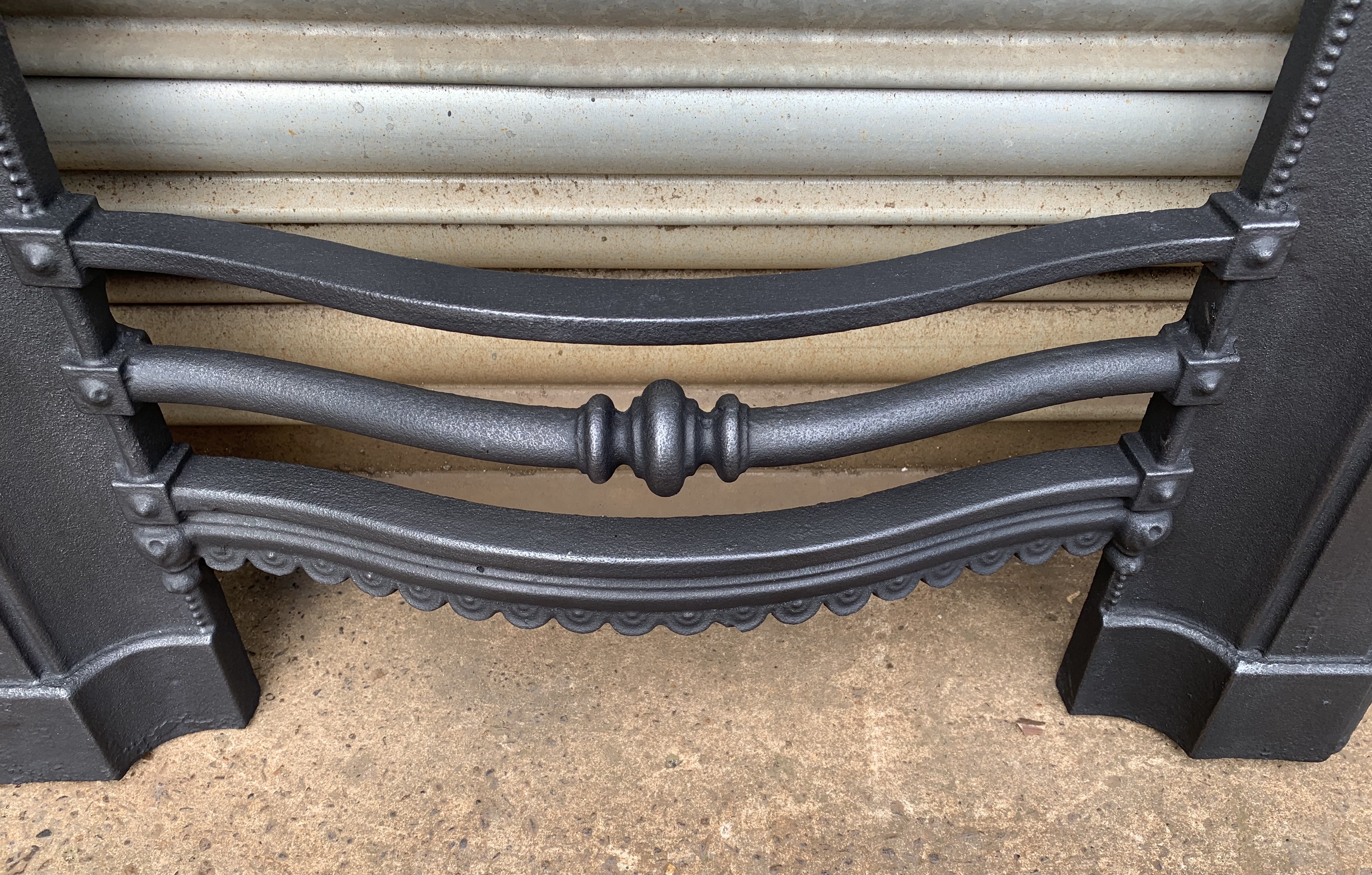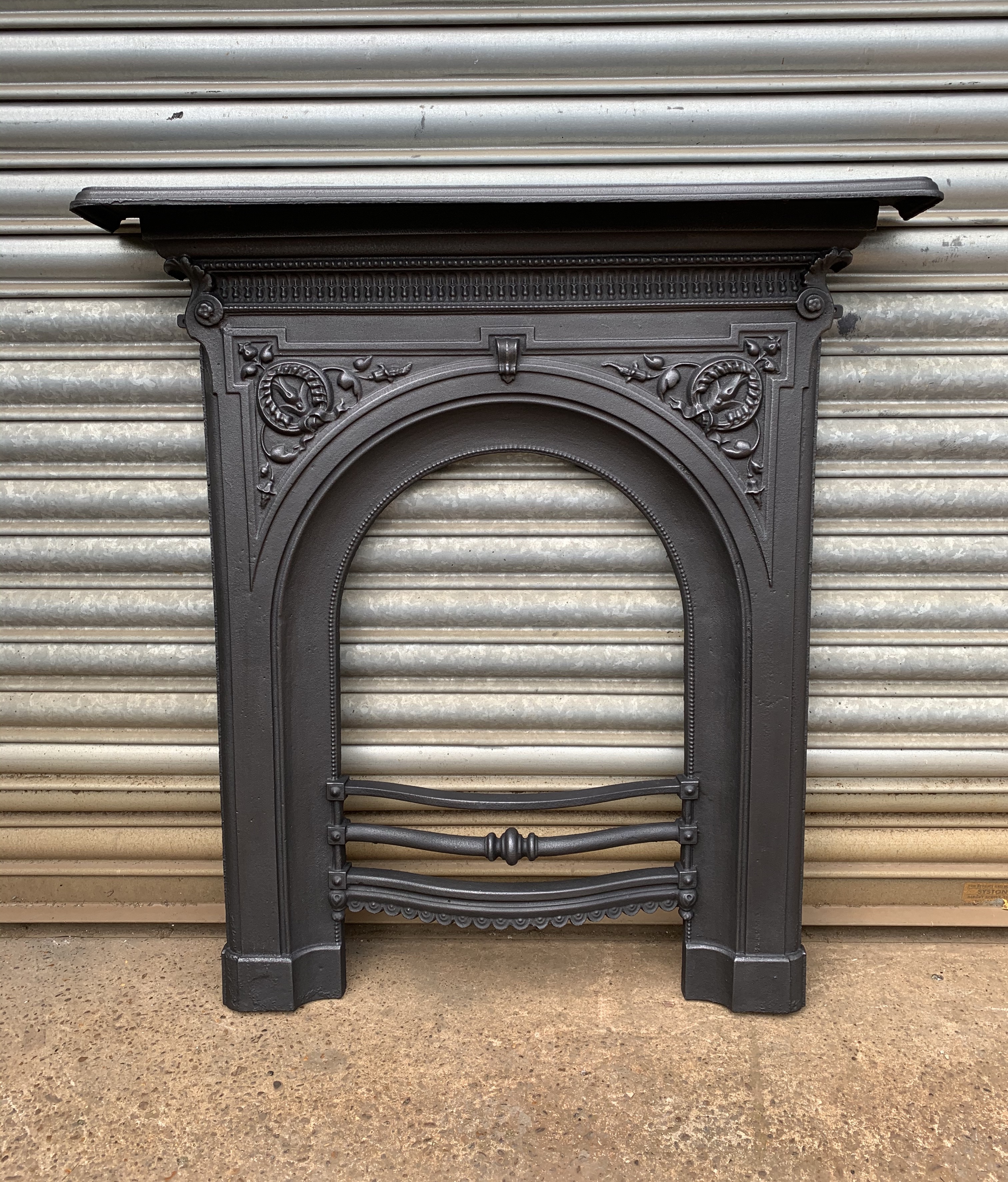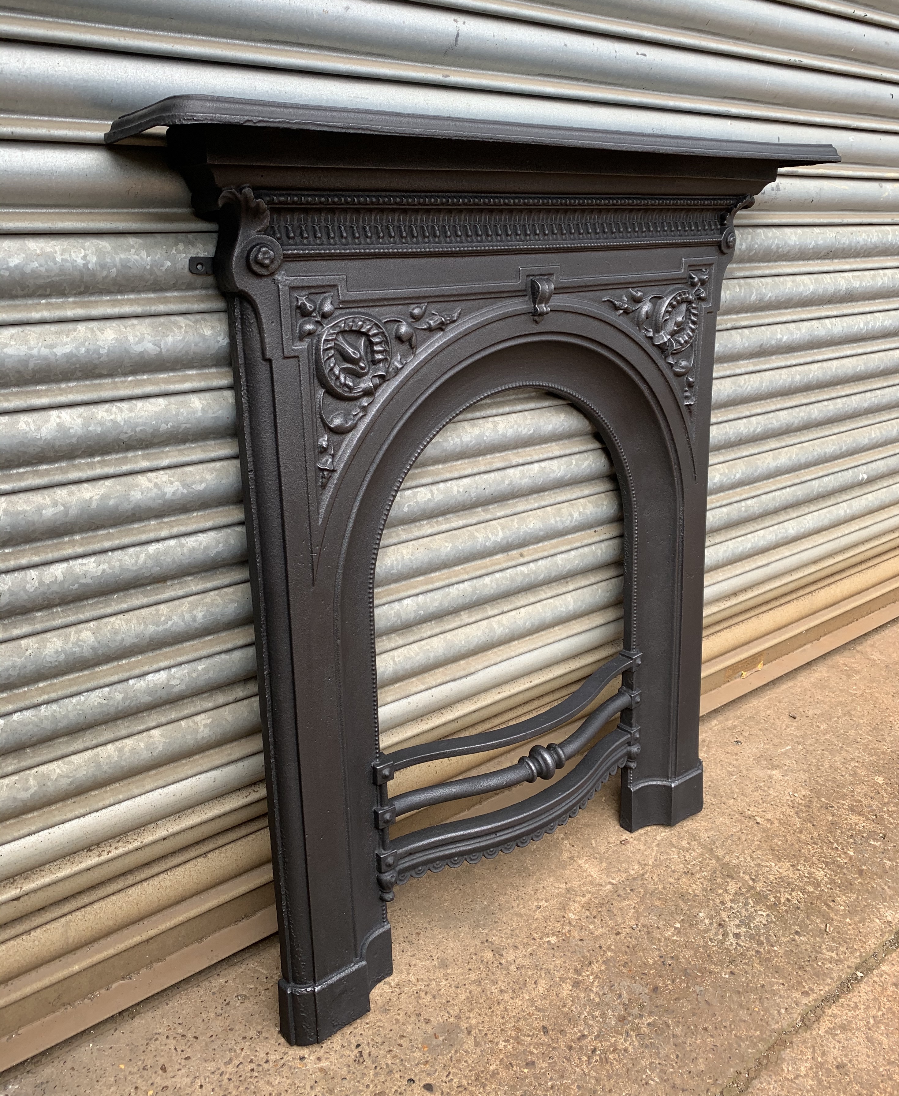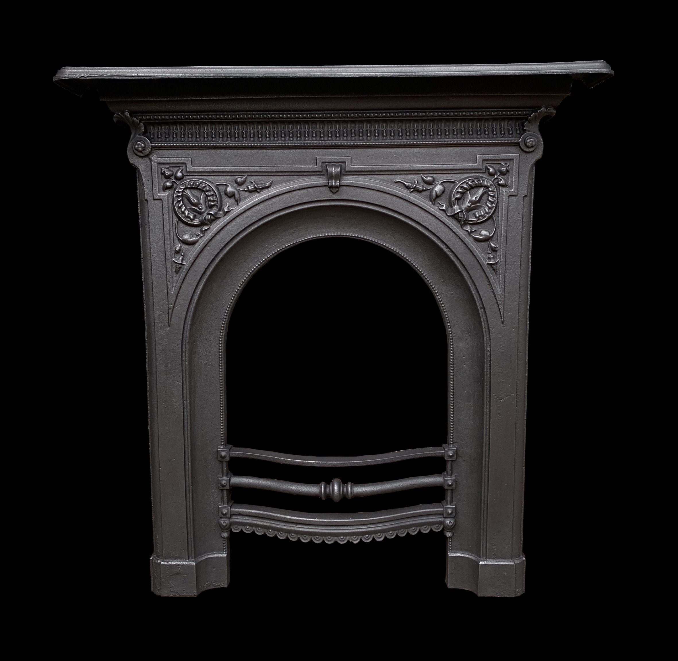 SOLD An original antique Victorian cast iron fireplace fascia with beautiful casting and ornate original bars. Contact us on 07885 379772 or message below for more information.